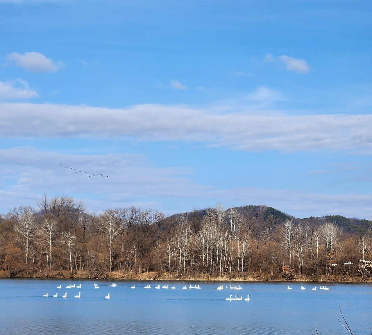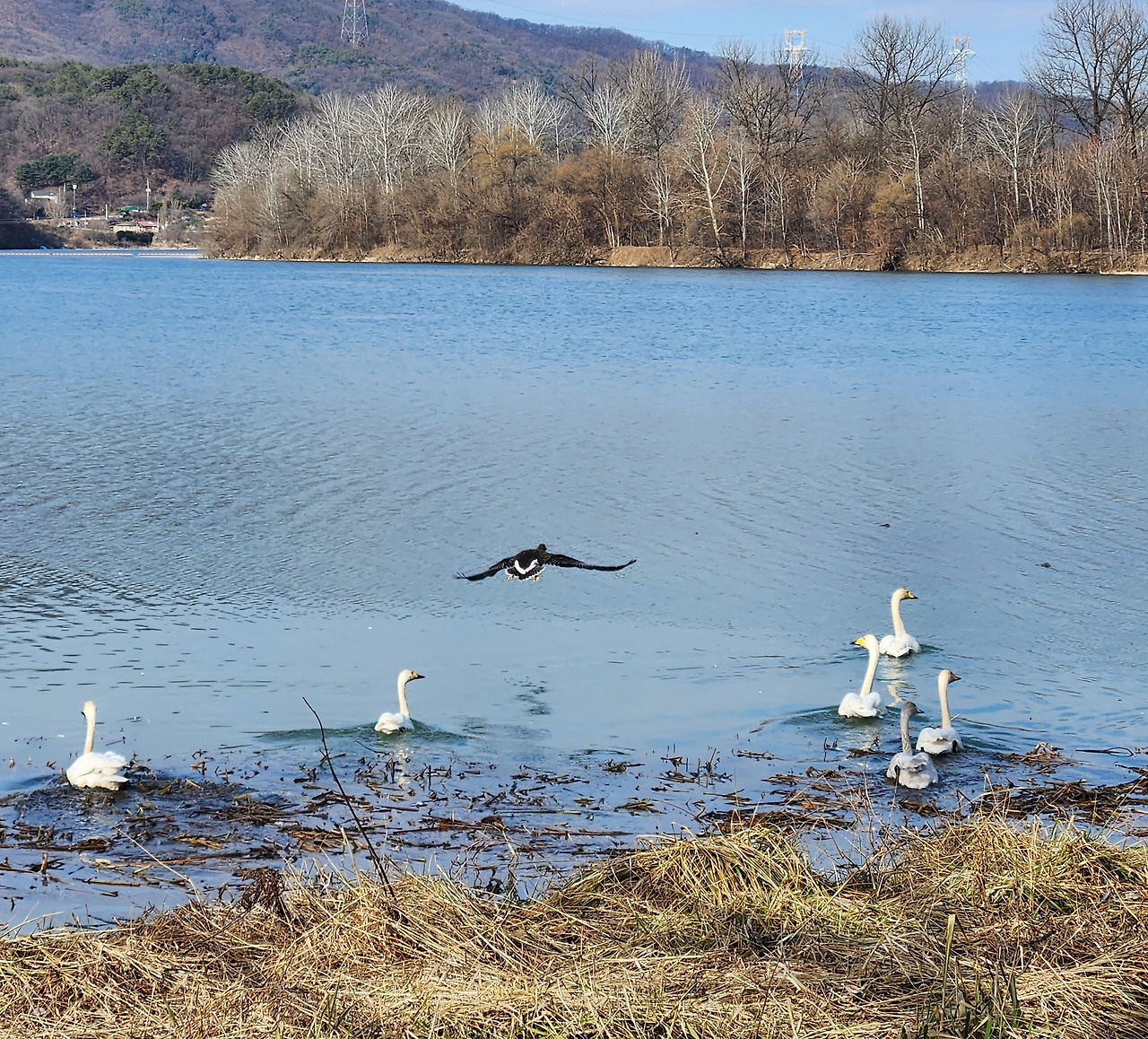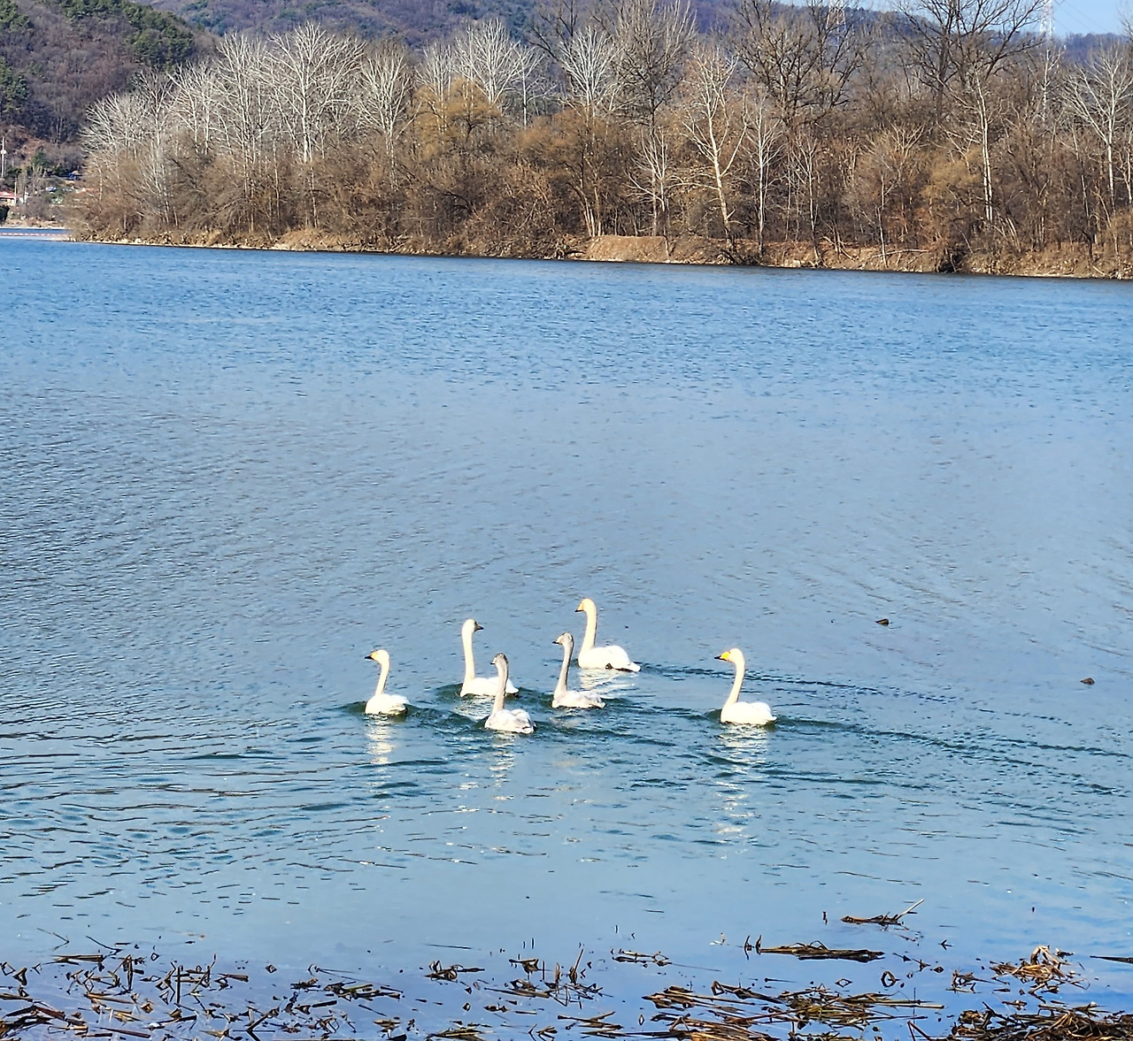 집에 돌아와서 자료를 찾아보니 제가 본 고니들은 큰고니라고 합니다. 멸종위기종 2종이며 우리나라에서는 천연기념물 102-2로 지정되어 있다고 합니다. 백조라고도 알려져 있으나, 백조라는 이름은 일제강점기 때 그리 쓰였다고 합니다. 고니의 종류가 다양하나, 우리가 동화를 통해 익히 아는 백조의 왕자, 미운오리새끼에 나오는 백조의 모델은 서양고니 혹고니라고 합니다. 특이하게 부리 쪽에 혹이 나서 그렇다고 합니다. 출처:네이버지식백과