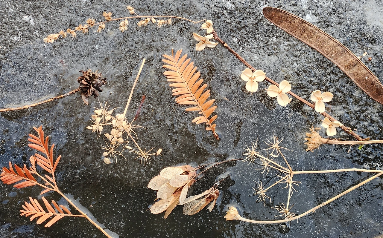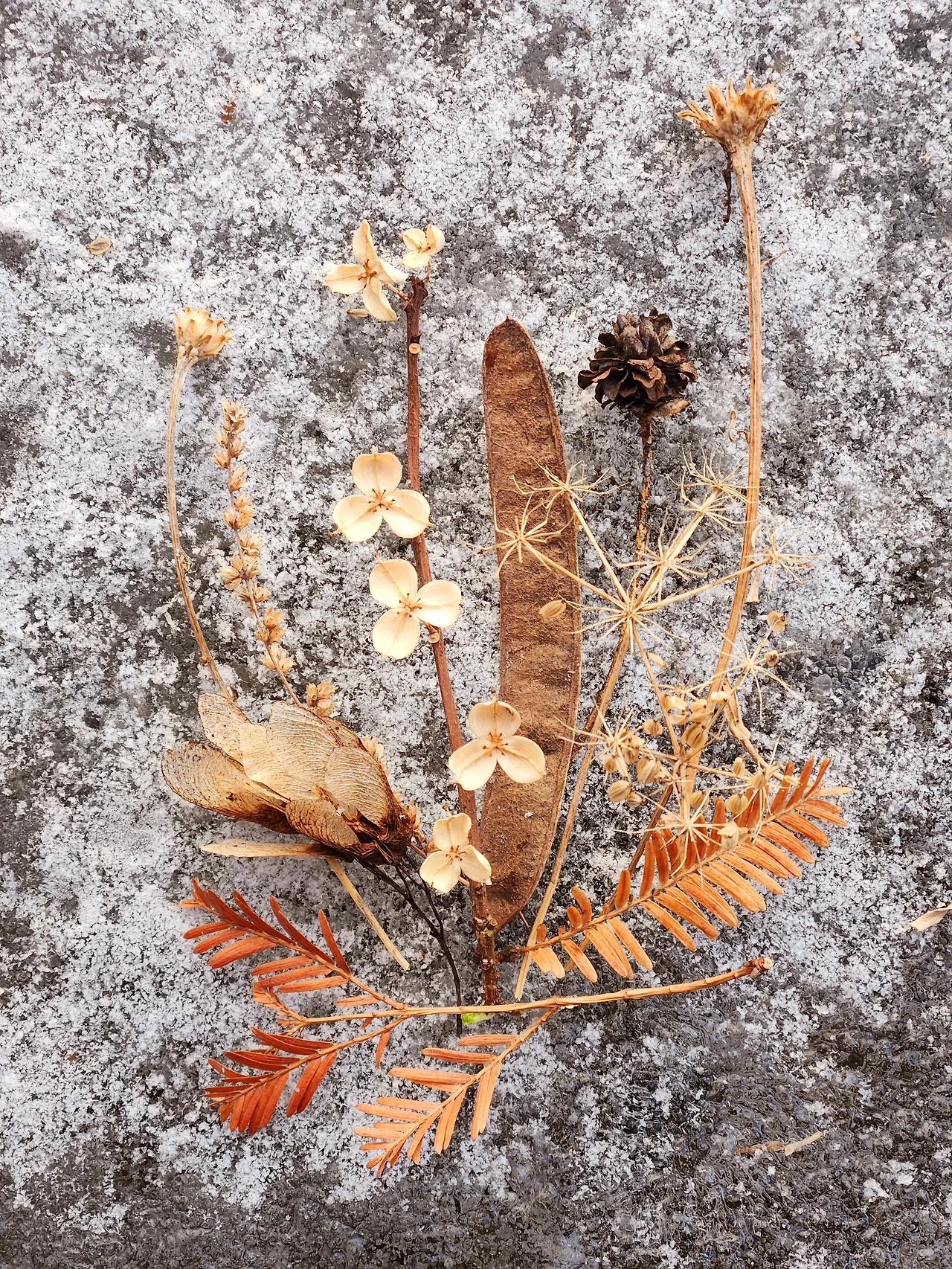 겨울 숲길을 걷다 보면 얼어붙은 땅 위에서 이미 생을 다한 것 같은 다양한 야생초들을 만납니다. 큰 나무 아래에 가리워져 보이지 않고 구겨진 채로, 쓰러진 채로 있던 야생초들을 모아봤어요. 하나씩 모아보니 다시 예쁜 꽃을 피웁니다.