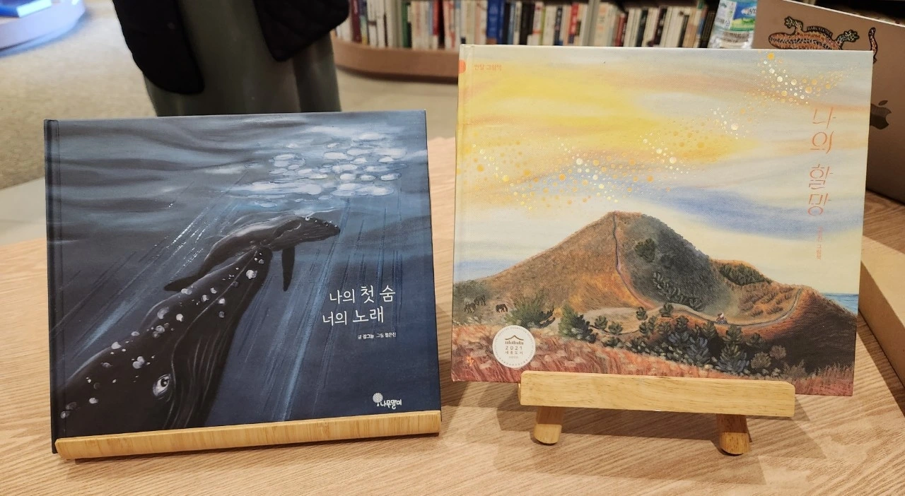 첫 번째 작품은 ‘나의 할망’(글,그림: 정은진 /반달)으로 어린 소녀와 할머니가 나눈 추억과 이별을 그린 깊은 울림을 주는 작품이었고. 두 번째 작품은 ‘나의 첫 숨 너의 노래’(글 : 강하늘, 그림: 정은진 /나무말미)라는 그림책이었다.