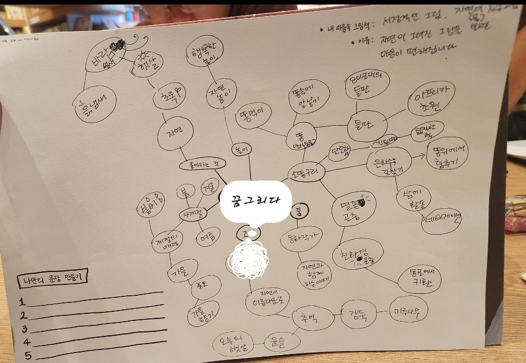 "꿈그리다는 자연에서 노는 것을 좋아하고, 그런 서정적인 그림책을 만들고 싶어 한다!"라고 마인드맵은 이야기하고 있었다.