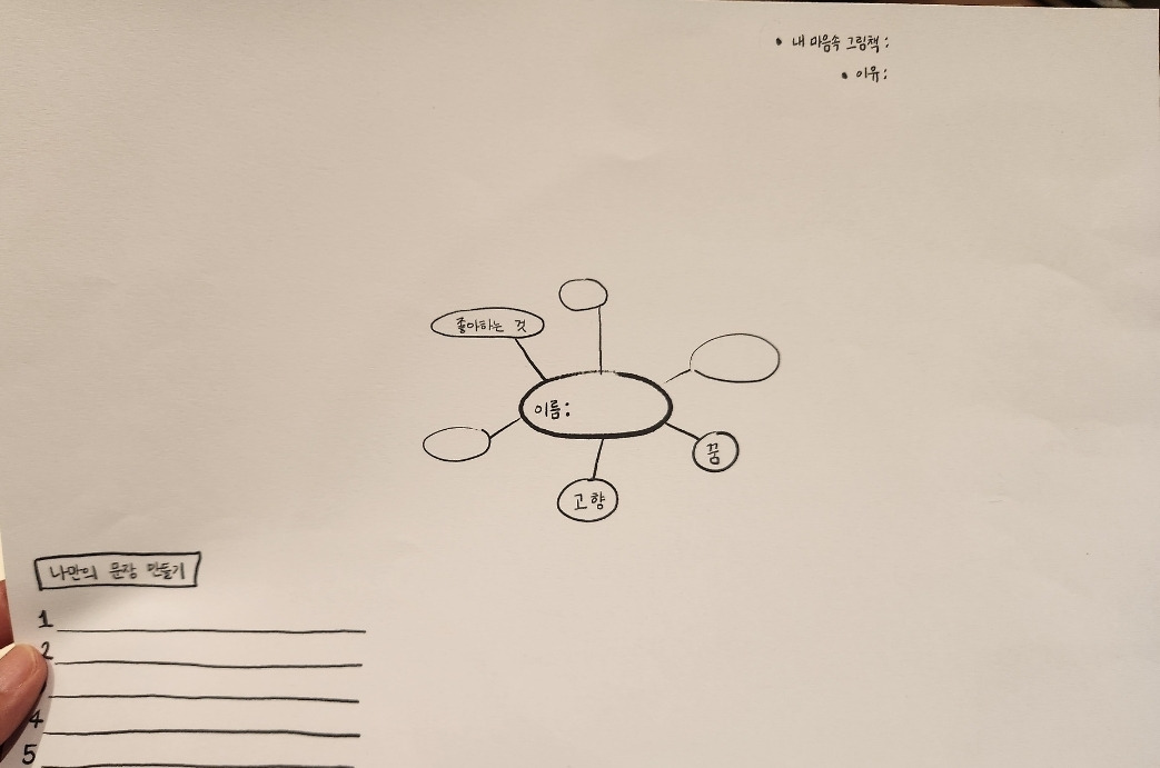 내가 좋아하는 것에서 꿈, 고향, 관심사 등을 펼쳐 보이니 어느새 빈 공간이 빽빽하게 채워졌다.