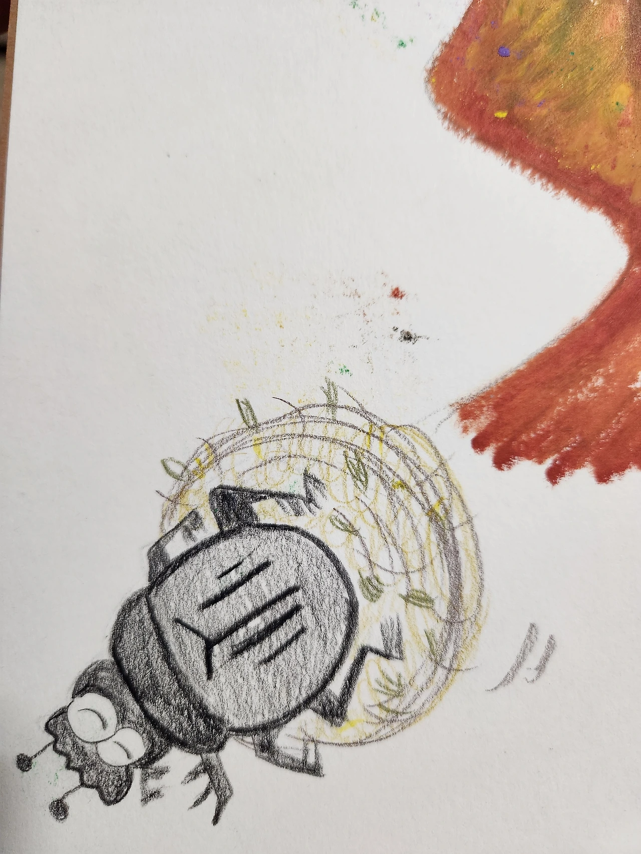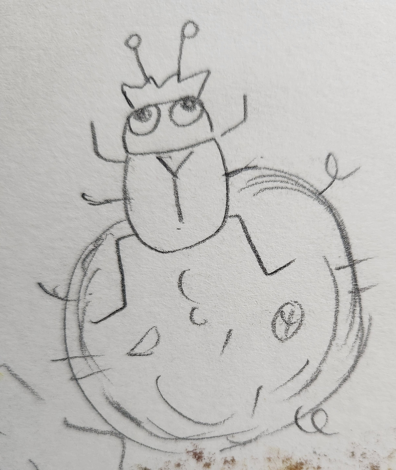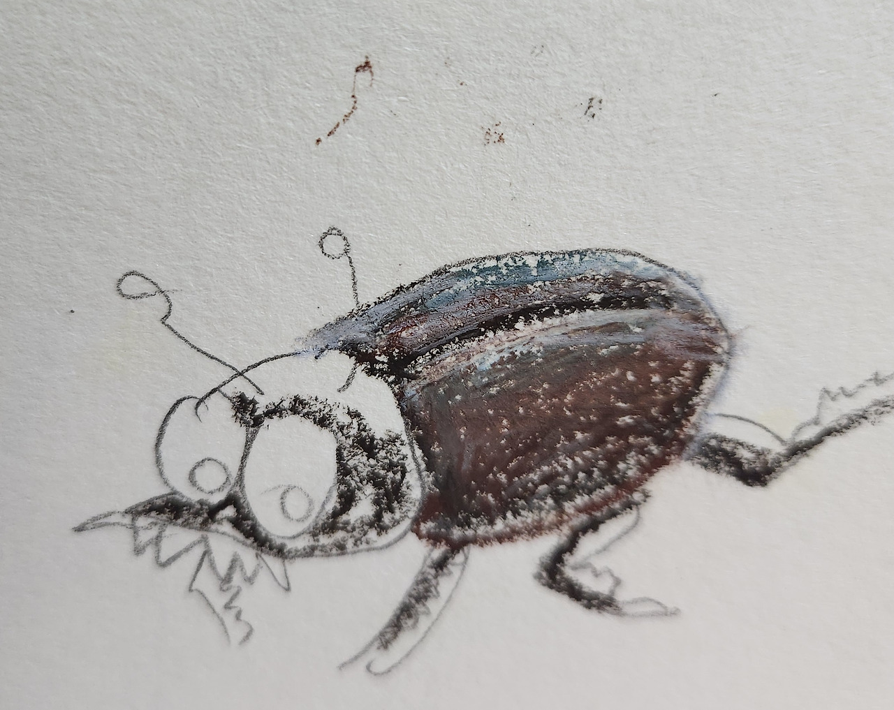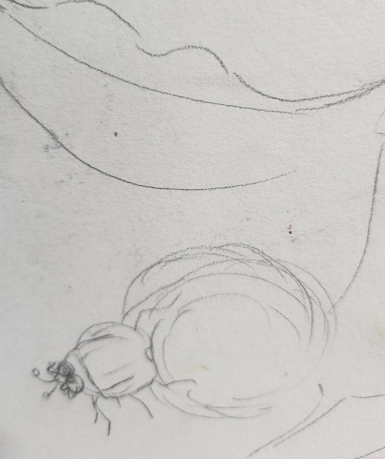 흐릿한 연필선으로 아래처럼 그리고 지우기를 반복했다. 헌데 가장 문제는 그릴 때마다 소똥구리가 다른 모습이라는 것이다! 그릴 때마다 모습이 다른 새로운 소똥구리가 그려졌다.