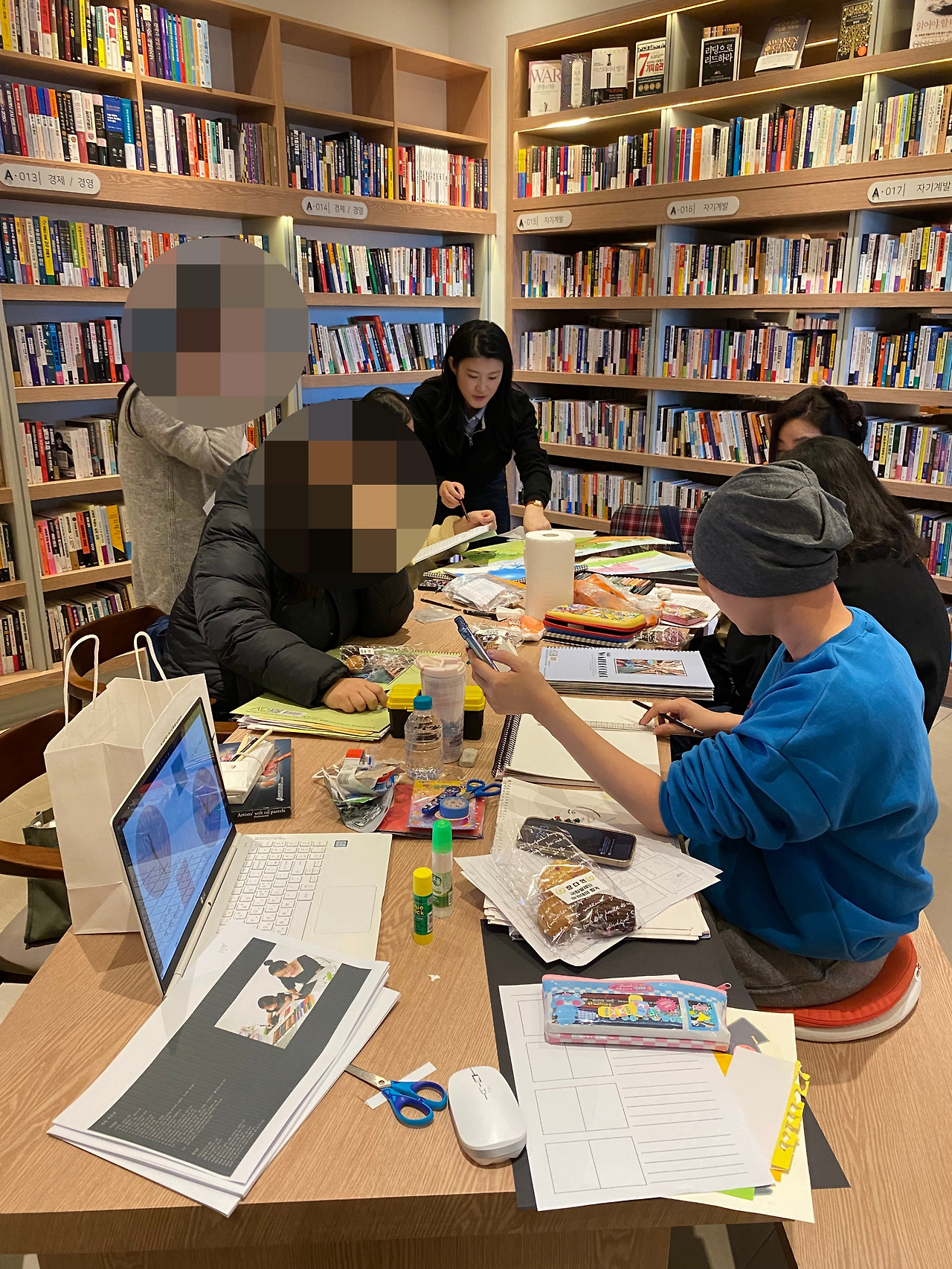 채색도구에 대해 이야기 나누는 중: photo by 꿈그리다
