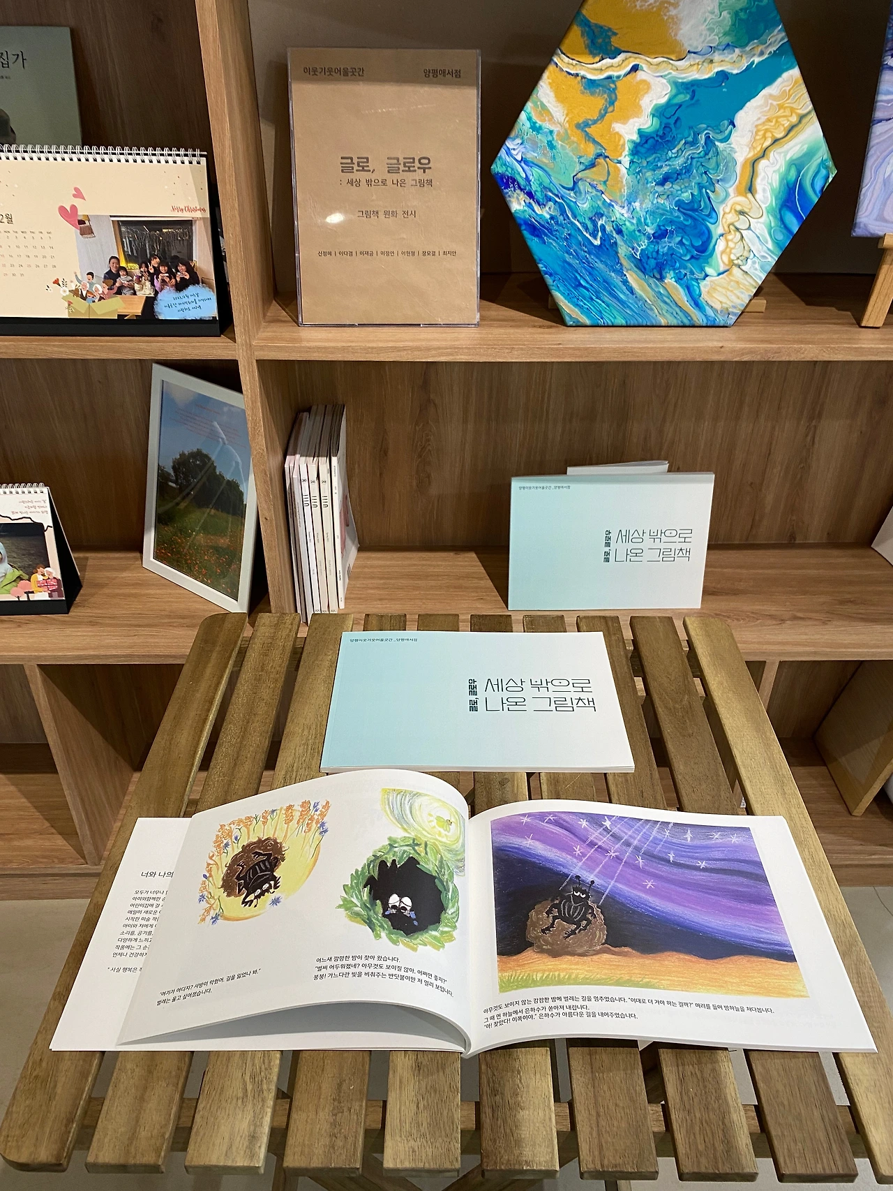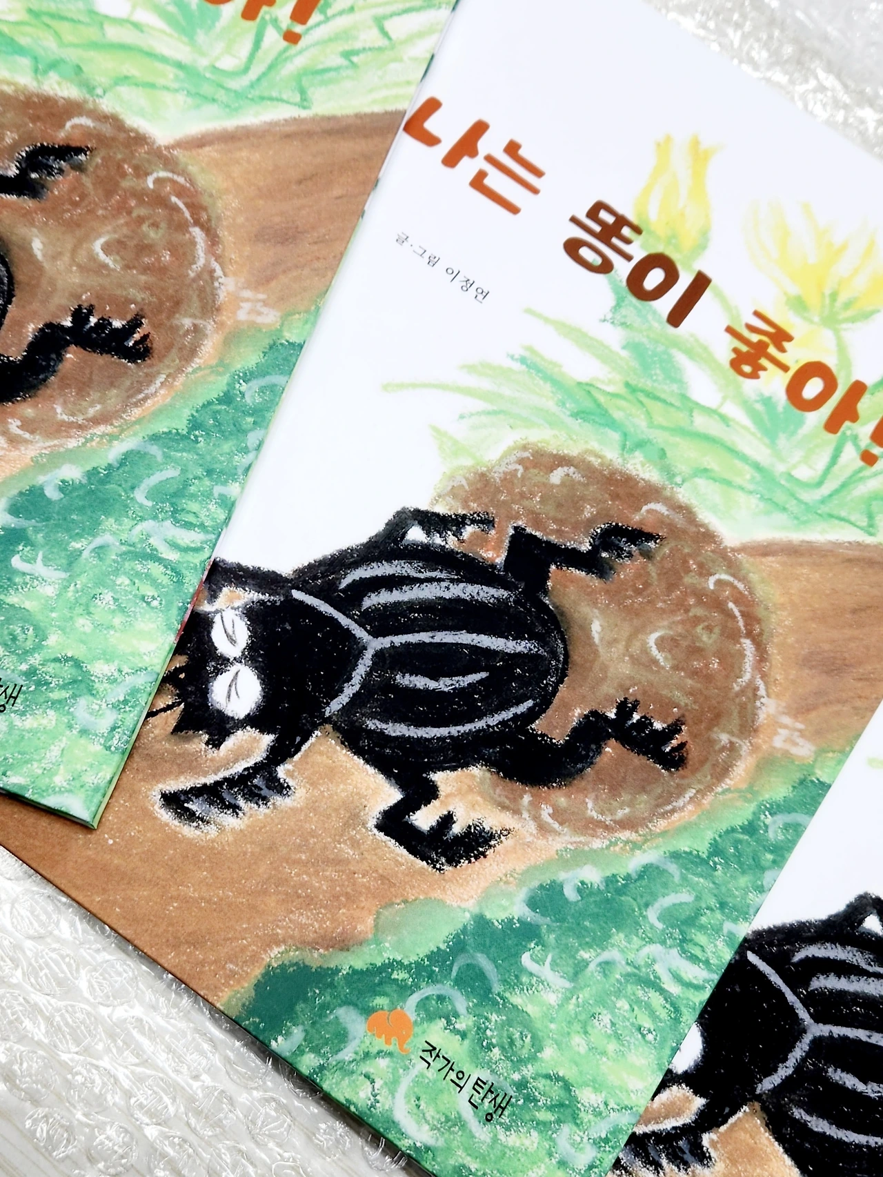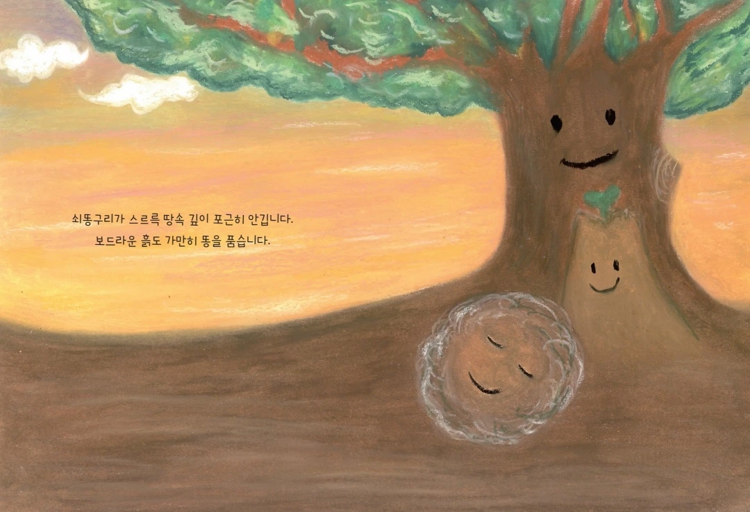 ”나는 똥이 좋아! “ 나의 그림책의 제목이다. 누가 뭐라고 해도 똥을 영차영차! 둥글게 굴리고 있는 쇠똥구리. 아주 작은 곤충이지만, 우리의 지구에 엄청난 일을 해 내는 쇠똥구리를 표현하고 싶었다. 누군가는 하찮은 미물이라고, 또 어떤 이는 더러운 똥 굴린다고 무시할지 모르는 쇠똥구리의 이야기를 하고 싶었다. 막연한 그림책에 대한 로망을 가지고 시작한 지역 문화 지원 프로그램에 참여를 한 것이었지만. 어느새 나는 내 이름으로 만든 그림책이 있는 그림책 저자가 되었다. 얼마나 가슴 떨리는 일이었는가. 내 인생에서 잊지 못할 꽤 커다란 한 지점이다. 글과 그림을 모두 해냈다는 것이 정말 스스로에게 기특하다고 칭찬해 주고 싶었다.