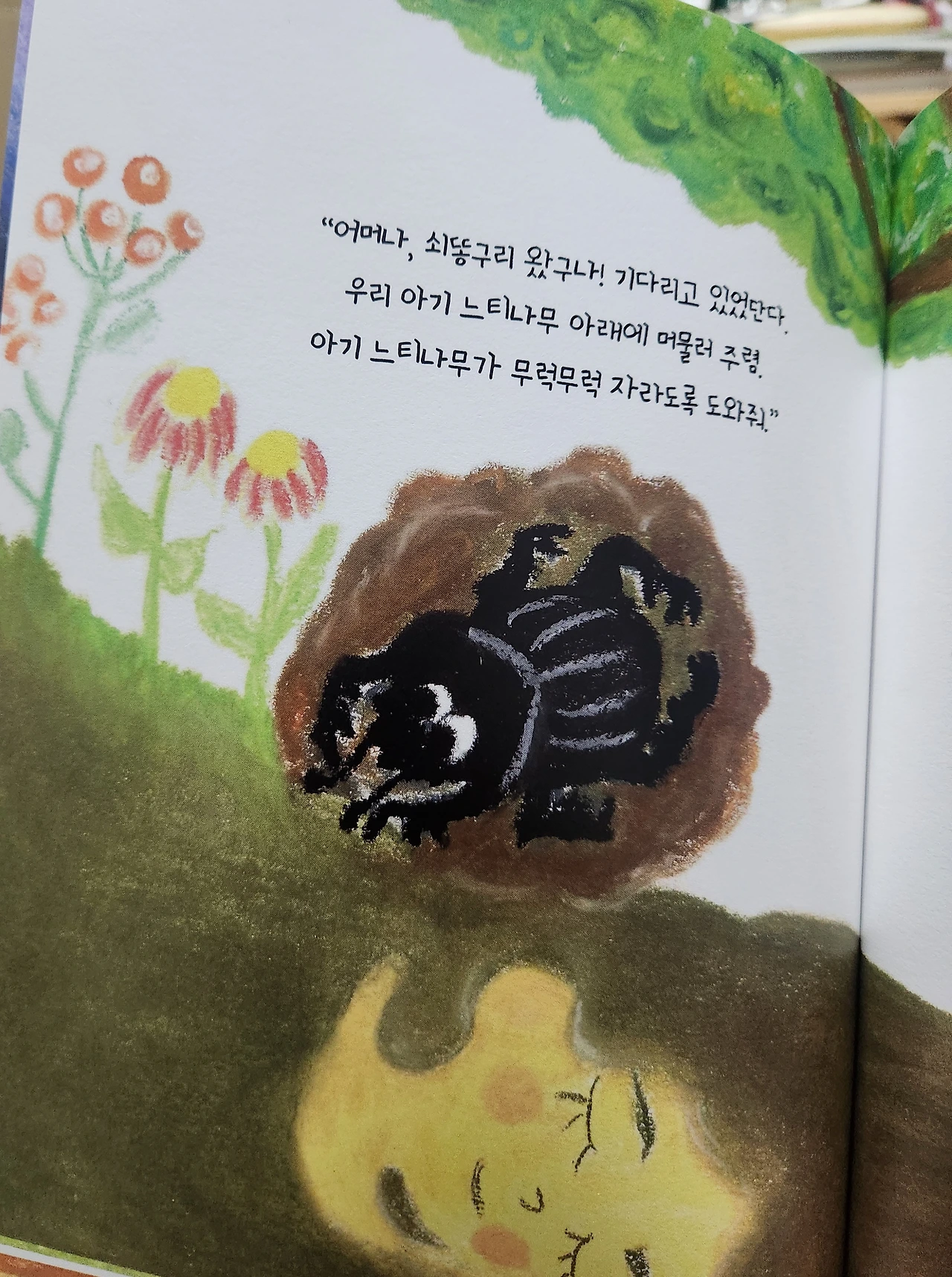 열심히 끝까지 최선을 다했던 나는 생애 첫 그림책을 완성할 수 있었다. 원고마감 전 날 오일파스텔을 엄청 문데고 또 문지르고 곱게 펴냈다. 그 노력에 비해 인쇄된 후의 그림은 오일 파스텔의 느낌이 오롯이 나진 았았다.