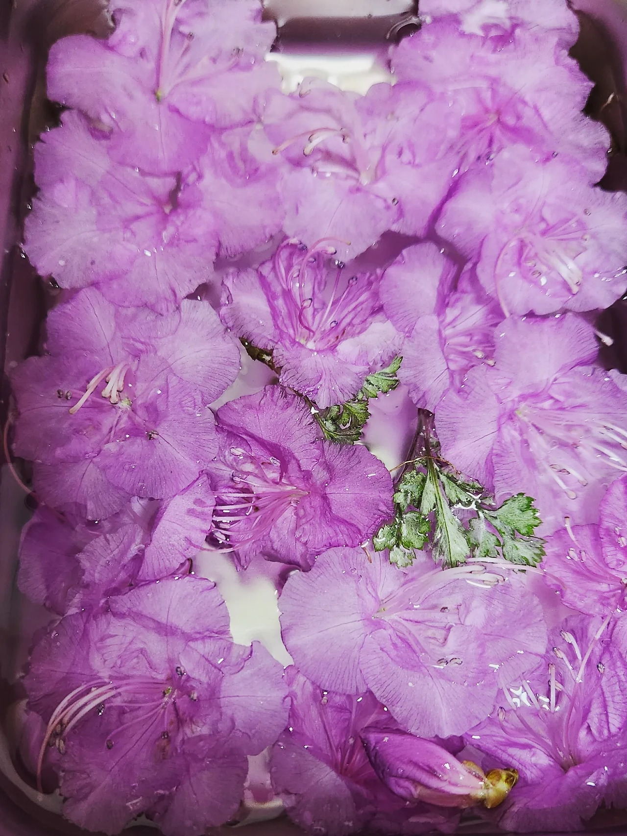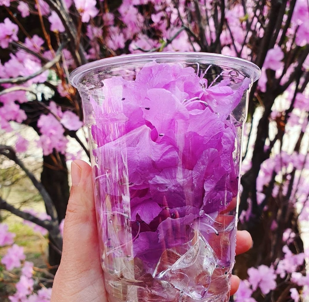 식초를 몇방울 넣어 깨끗이 세척하고 진달래꽃술은 제거해서 준비