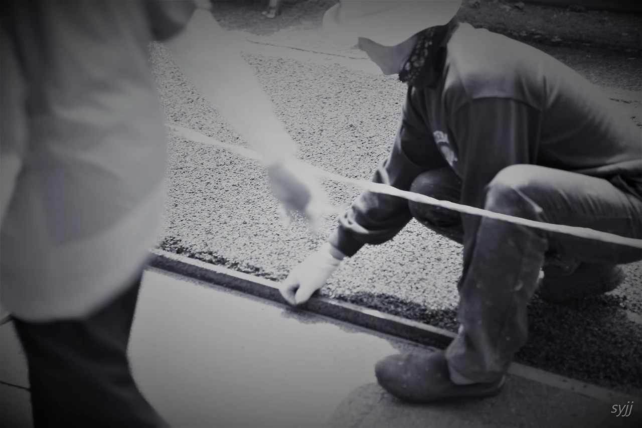 축제를 앞두고 망가진 인도를 보수하고 있는 곳이 서너 군데.