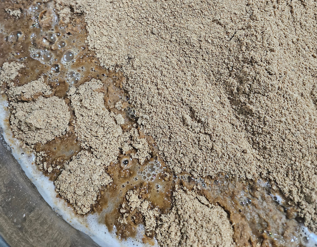 5) 식혀준 물에 메주가루, 고춧가루, 쌀조청,