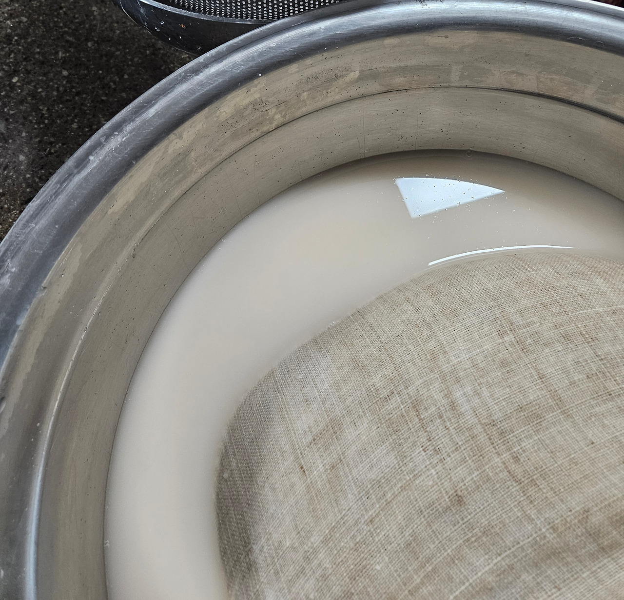 어 준다.(엿기름물을 가라앉혀 맑은 물만 사용하기도 하는데 엿기름 재료가 보리이므로 가라앉은 전분물을 그대로 사용해도 된다).