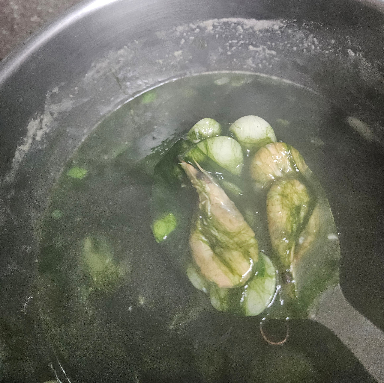 3) 떡국이 떠오르면 깨끗이 손질한 매생이를 넣고 끓기 시작하면 국간장, 액젓, 마늘,대파,