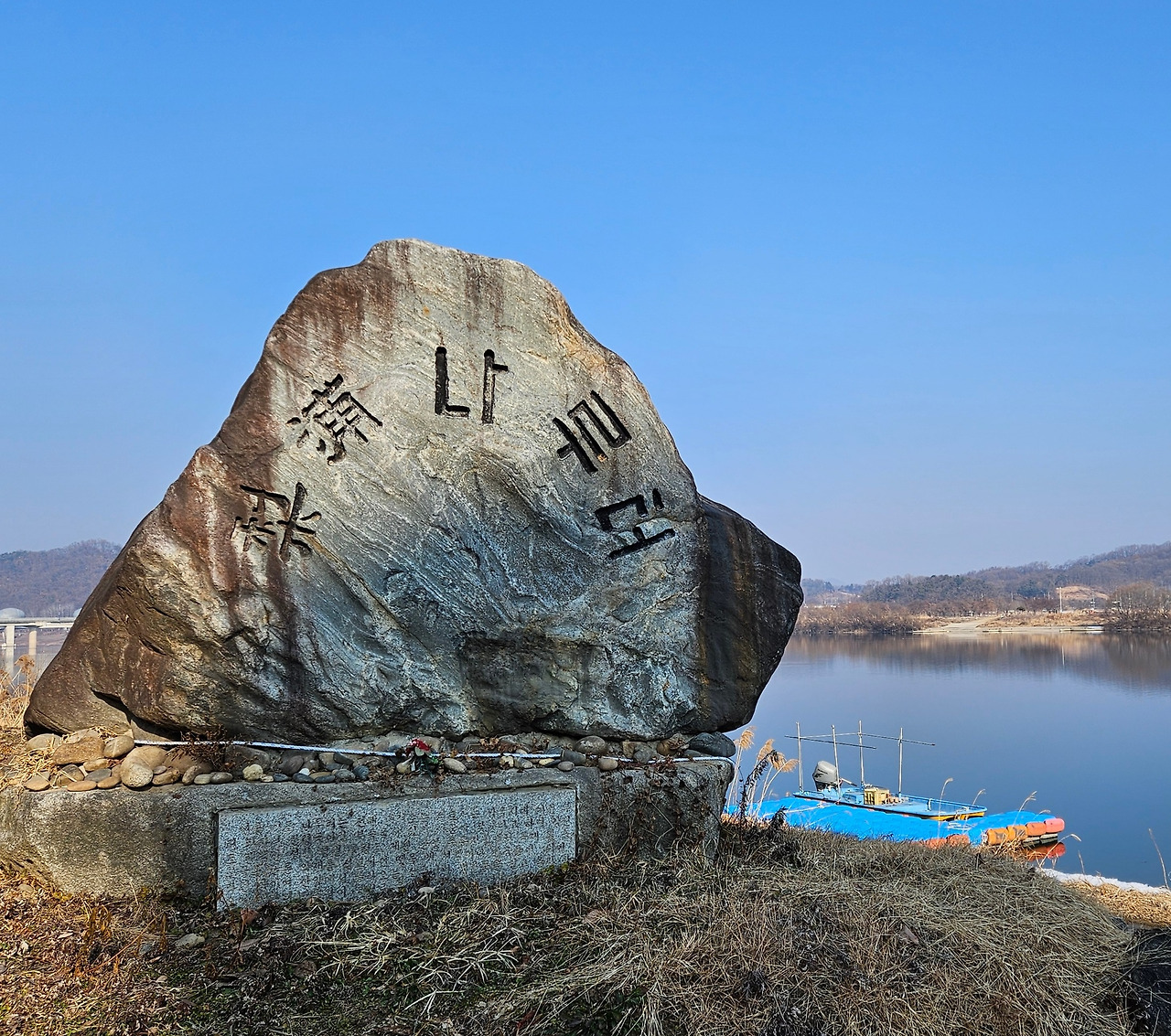한겨울에 땀을 뻘뻘 흘리며 그래 이 맛이야! 이맛이 그리웠나 봐! 다음에 친구들 데리고 와야겠다, 기대 이상으로 맛깔스러운 매운탕을 오랜만에 맛보게 됐다. 배도 부르고 산책이나 하자며 둘러보다가 그곳이 예전에 유명했던 여주이포나루터인걸 알게 되었다. 돌 표지판이 없었더라면 그냥 강물이 흐르는구나 정도로 생각하며 넘겼을 것 같다.