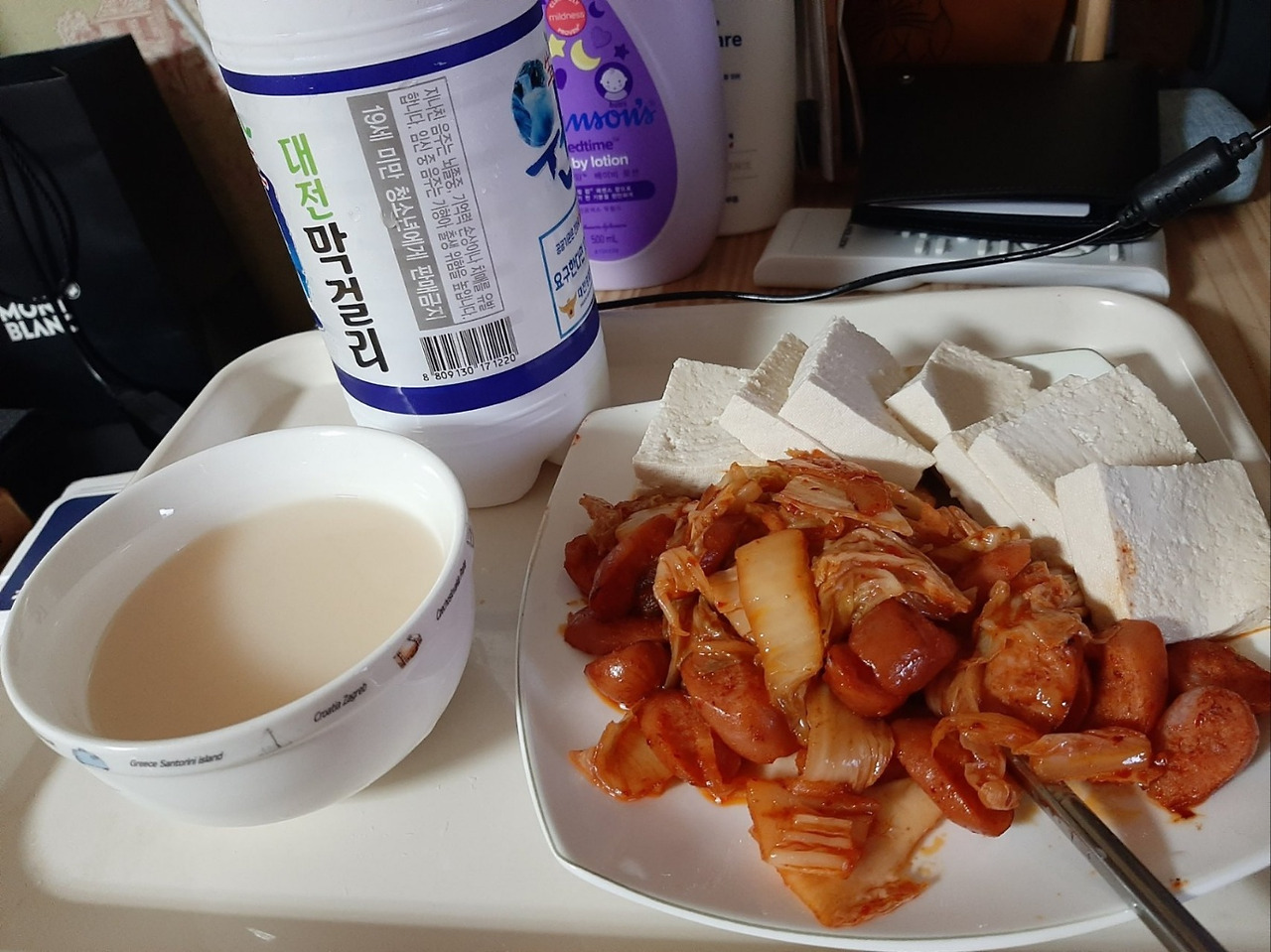 얼른 퇴근하고 집 앞에서 막걸리 한통을 사들고 들어왔지
