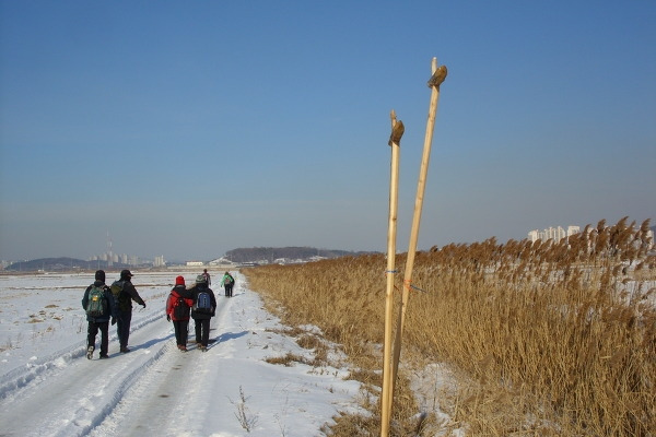 우리는 '사유지이므로 접근을 금지한다'는 팻말과 울타리를 지났다. 물론 2010년 1월의 첫 늠내길 풍경이었다. 이곳에서 볼 수 있는 희귀종 모새달(벼과 식물). 자생한 모새달의 군락이 보였다.