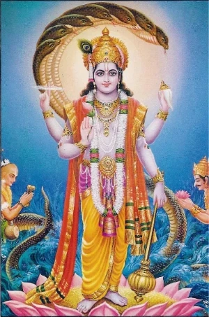 비슈누 : 유지와 보존의 신. 위기가 닥칠 때 다양한 화신(아바타라)으로 지상에 강림한다 (라마, 크리슈나 등).