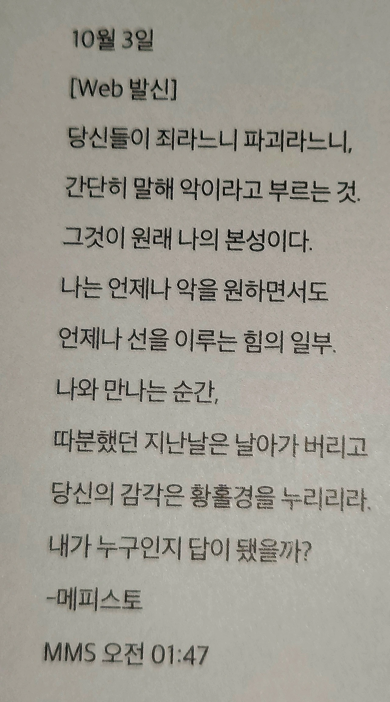 마치 악마가 나에게 보낸 초대장이라 해야 하나?