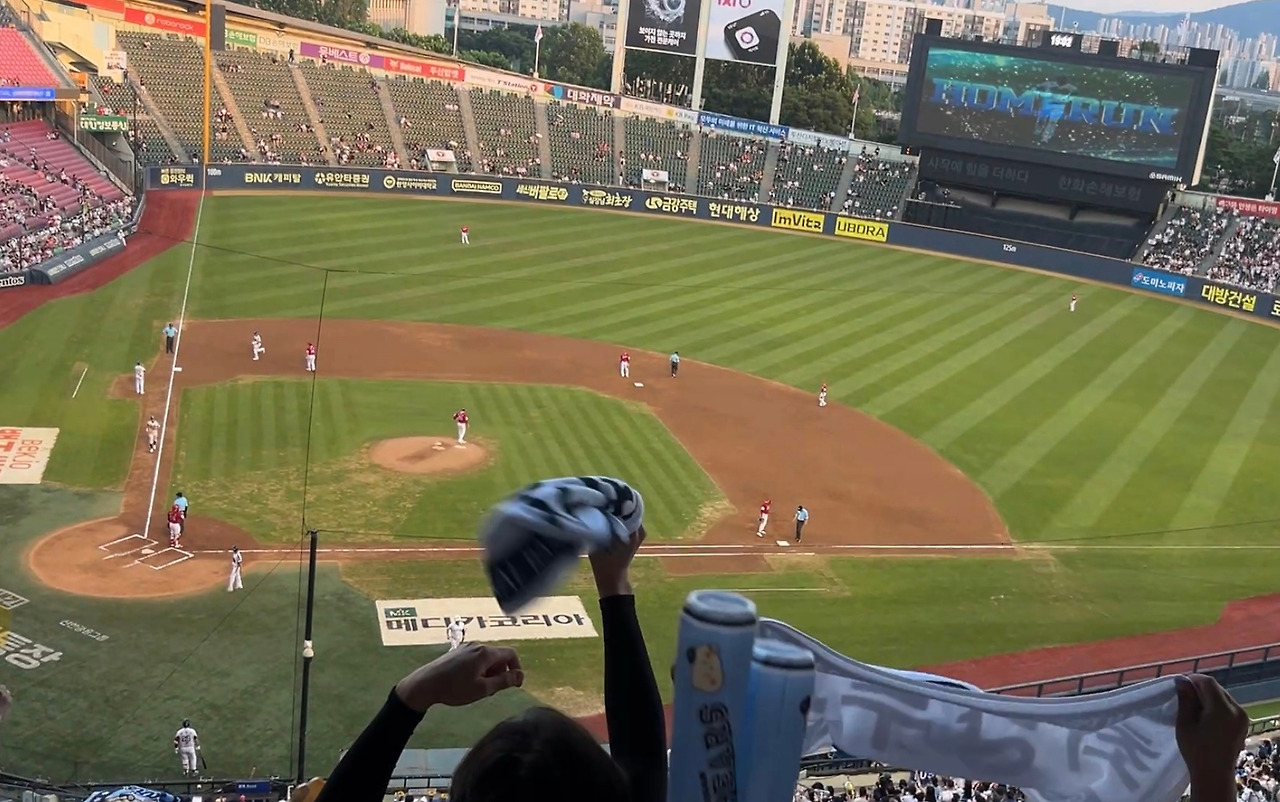 2025년 8월 2일. 경기날이 다가왔다. 두산은 9등이고 상대 SSG는 4등이라 불리한 경기였지만, 나는 희망을 버리지 않았다. 나 스스로를 승리 요정이라 창하며 이길 것이라고 되뇌었다. 경기가 시작되었다. 1회 말, 두산이 1점을 냈다. 나는 점수가 한참 뒤에 나올 것으로 예상했는데 의외로 바로 점수가 났다. 전후좌우에서 두산의 응원가가 들렸다. 하지만 이 기쁨은 오래가지 않았다. 2회 초에 바로 홈런을 맞고 4점을 내어준 것이다. 스코어는 1:4. 그러나 두산처럼 SSG의 기쁨도 오래가지 못했다. 3회 말에 바로 케이브의 홈런으로 2점을 추격하여 3:4가 된 것이다. 내가 카메라를 킨 순간에 홈런을 쳐 더 인상 깊었다. 함성이 영상에 그대로 담겼다.