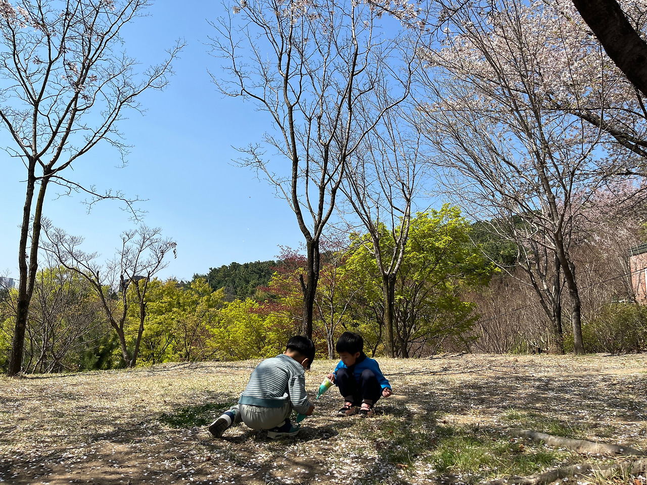 저는 벚나무, 산수유, 개나리가 가득한 곳으로 아이들을 안내했습니다.