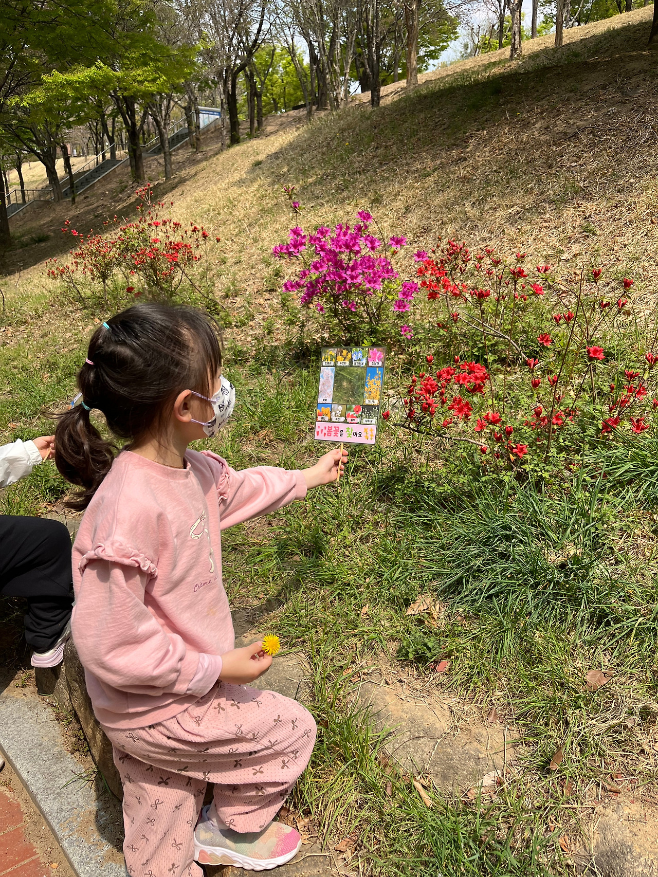 아이들은 야몽숲에서 봄을 만드는 이가 누군지 궁금해했고, 유치원에서 가장 가까운 야몽숲인 연암공원으로 달려갔습니다.