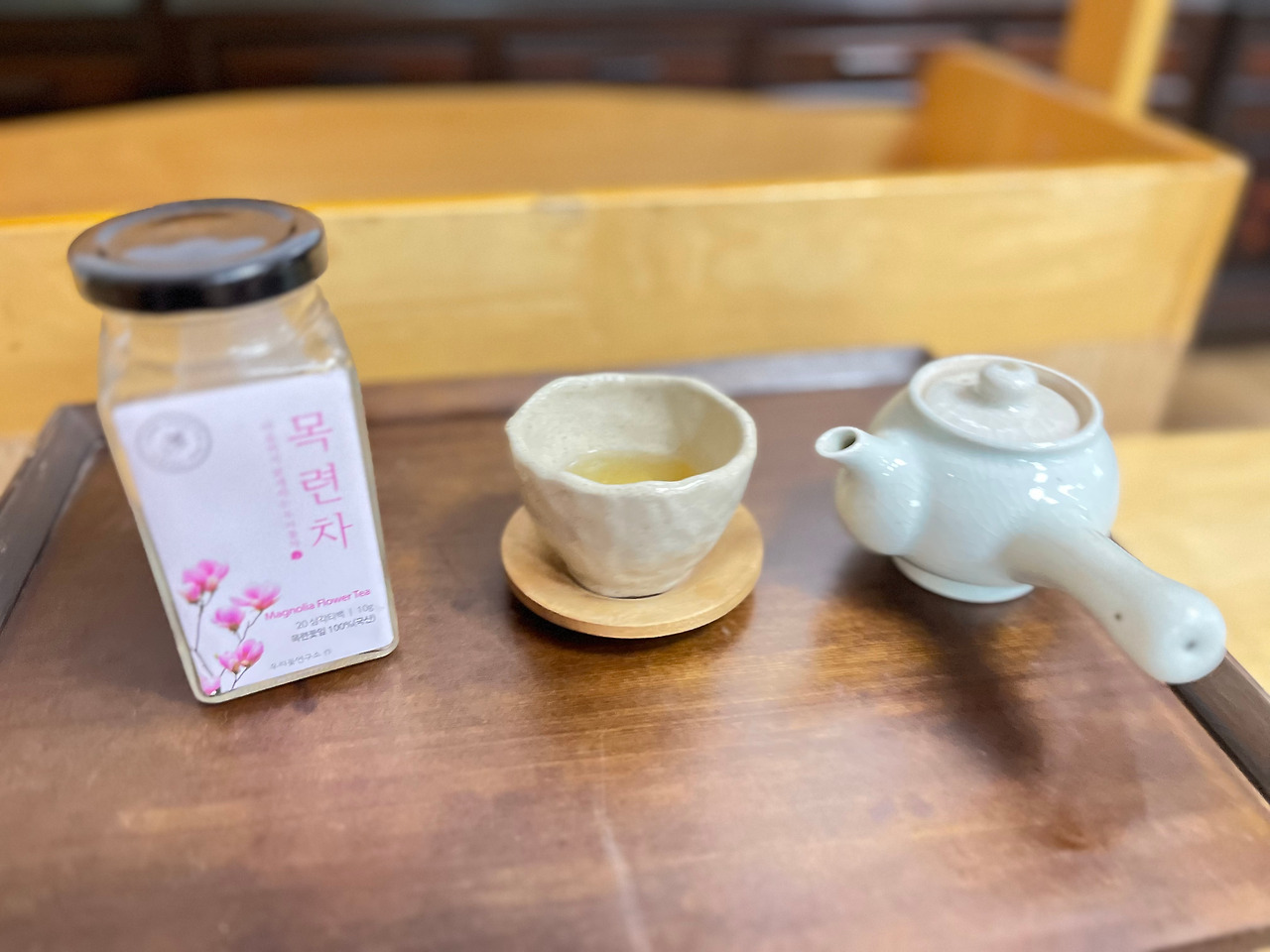 다도세트를 찾아 꽃차 만들기 영상을 시청한 후 목련차를 마셨습니다.