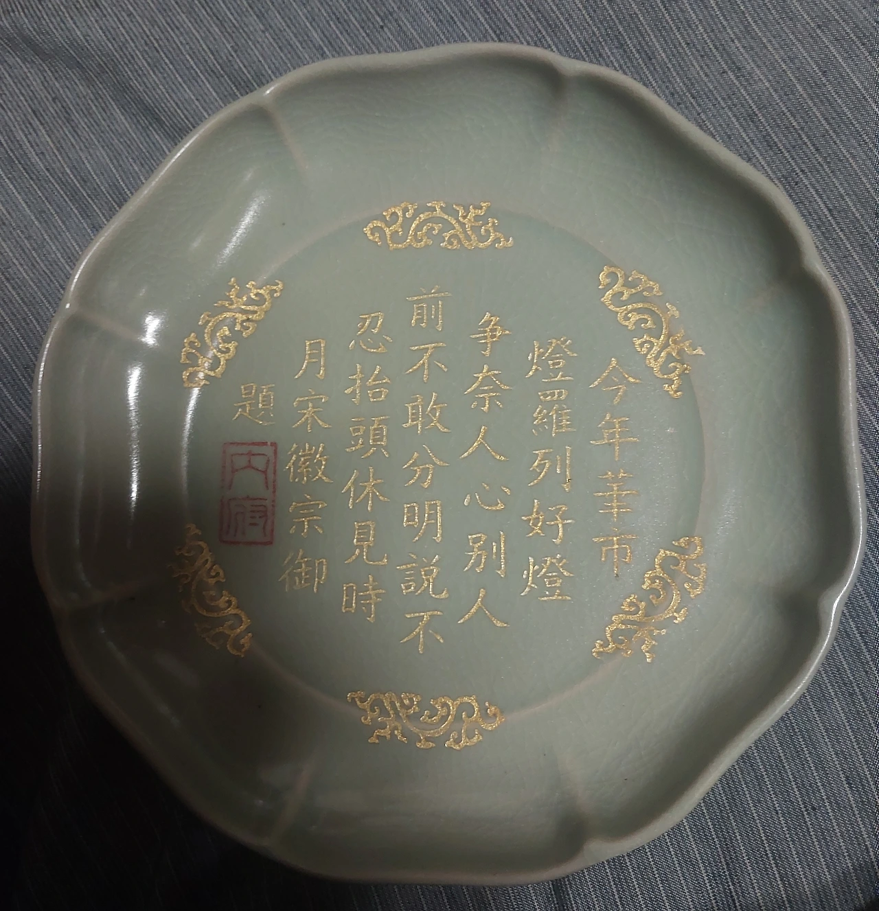 12세기 청자 접시 송 휘종 황제의 시