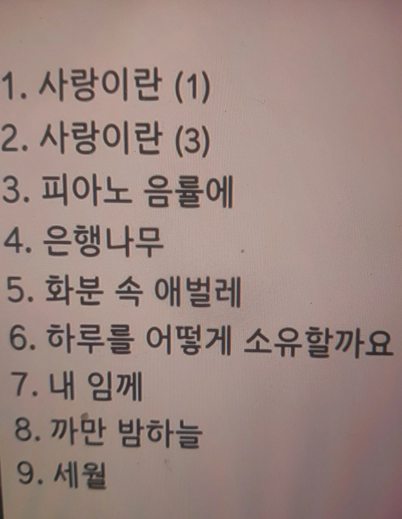 피아노 음률에 사랑을 맡겨본다 사랑은 넓은 대지 위에 환한 미소이다 사랑이란 솜사탕 같은 비수다 사랑이란 아픔 속에서도 찾아볼 수 있게 하는 한줄기 빛이다 사랑이란 피아노 선율 속 아련한 즐거움이려나...