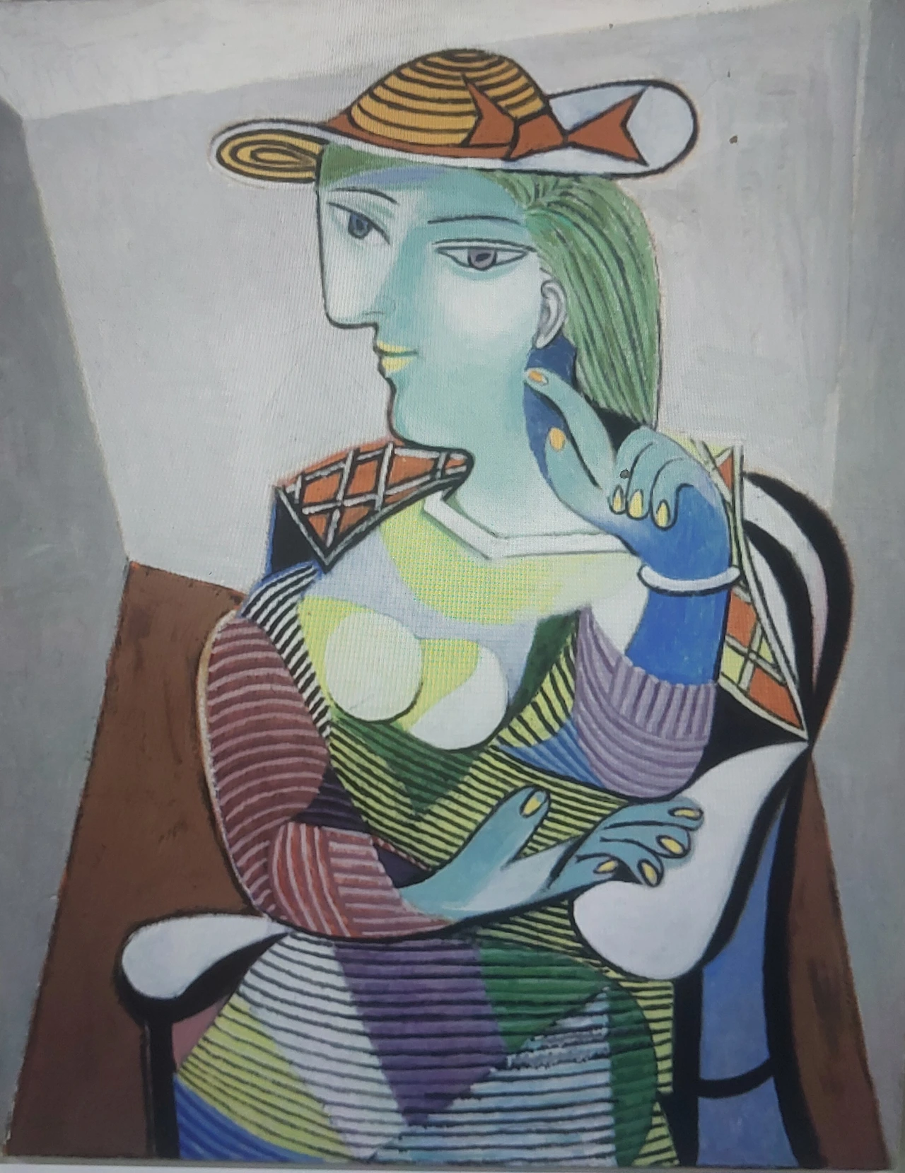 28세 연하 "마리 테레즈 발테르"의 모델로 작품을 자세히 보기로 한다 발테르의 얼굴은 푸른 톤으로 묘사하였다