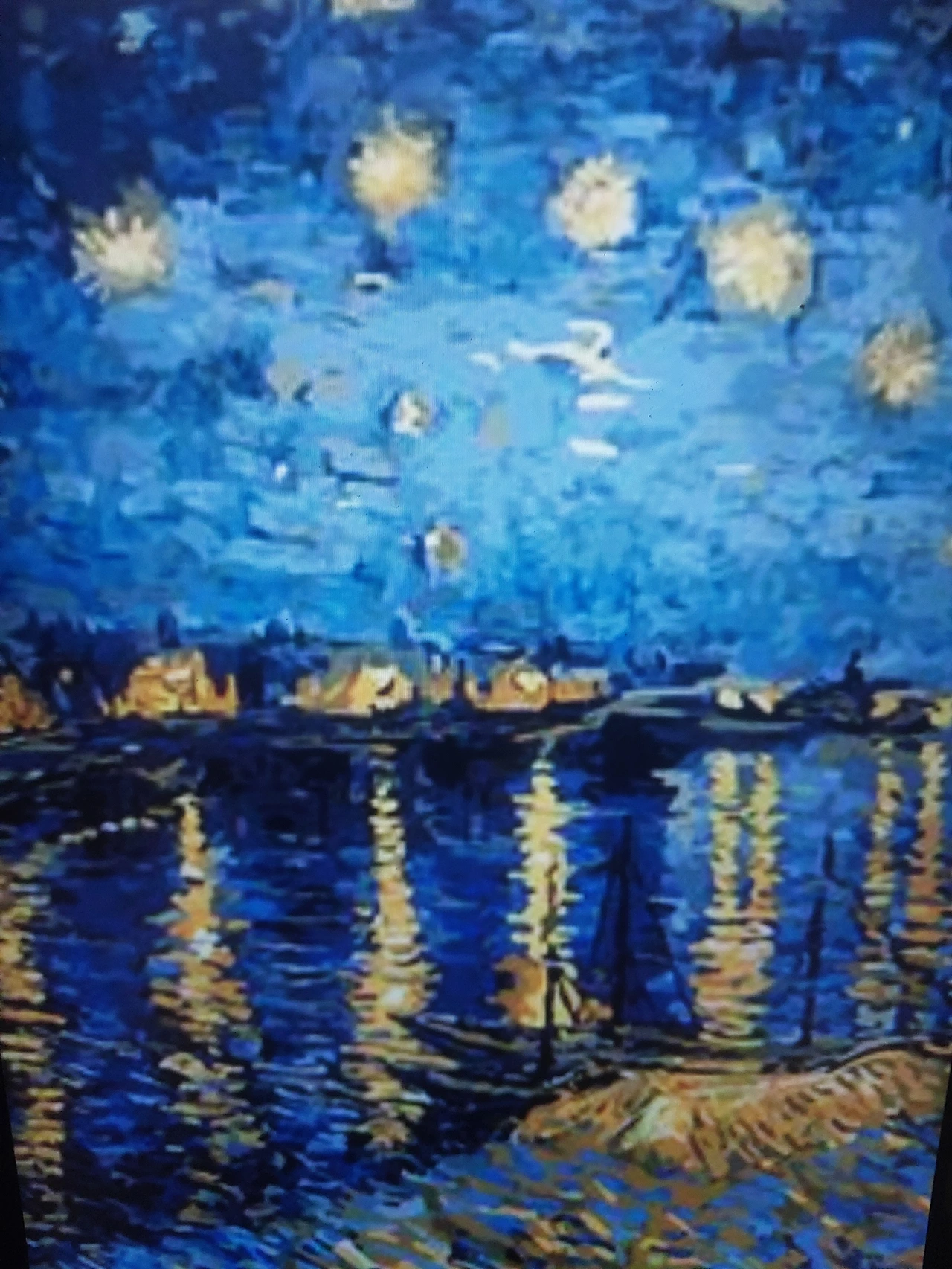 하늘도 들판도 마을까지 튜브에서 짜낸 물감을 섟었어 나의 별 아를의 강에서 하늘의 별이 빛나는 밤