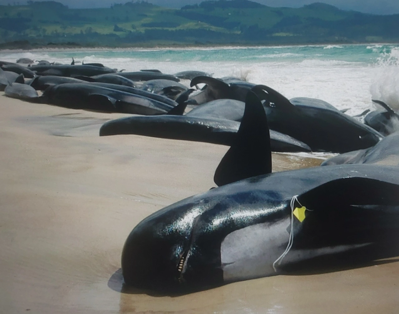 고래들이 함께 죽는 슬픈 현실을 바라만 봐야 하는 현실,자연생태계의 연구와 대응이 절실하다.
