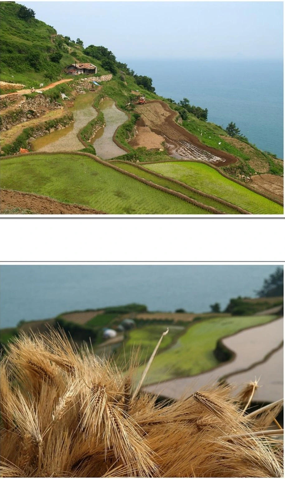 저녁이 오면 층층의 논마다 노을이 고이고 오늘 흘린 땀과 견뎌낸 시간이 그 속에 잠긴다 오늘도 논배미는 소와 내일을 기다린다