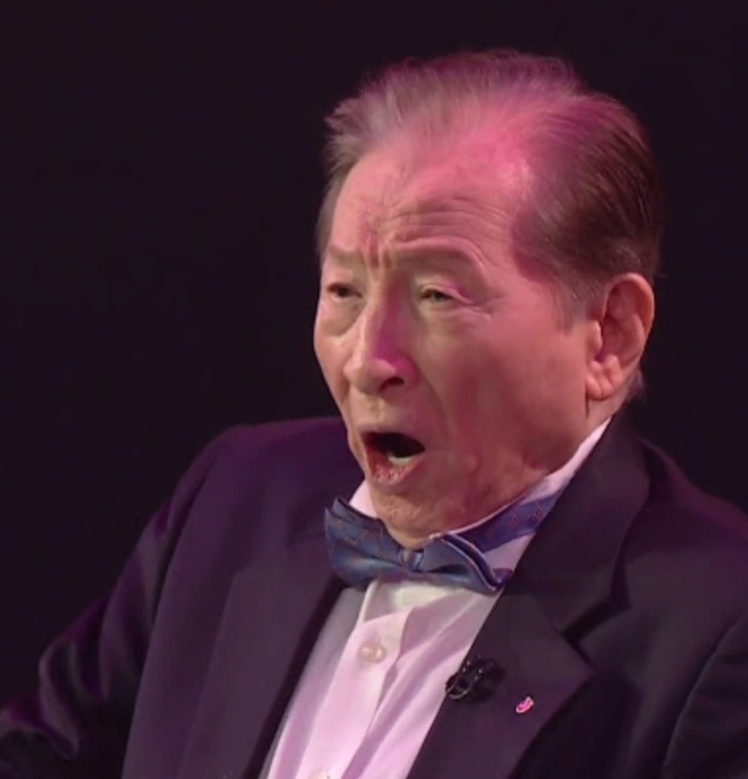 백세의 성악가가 천천히 걸어 나와