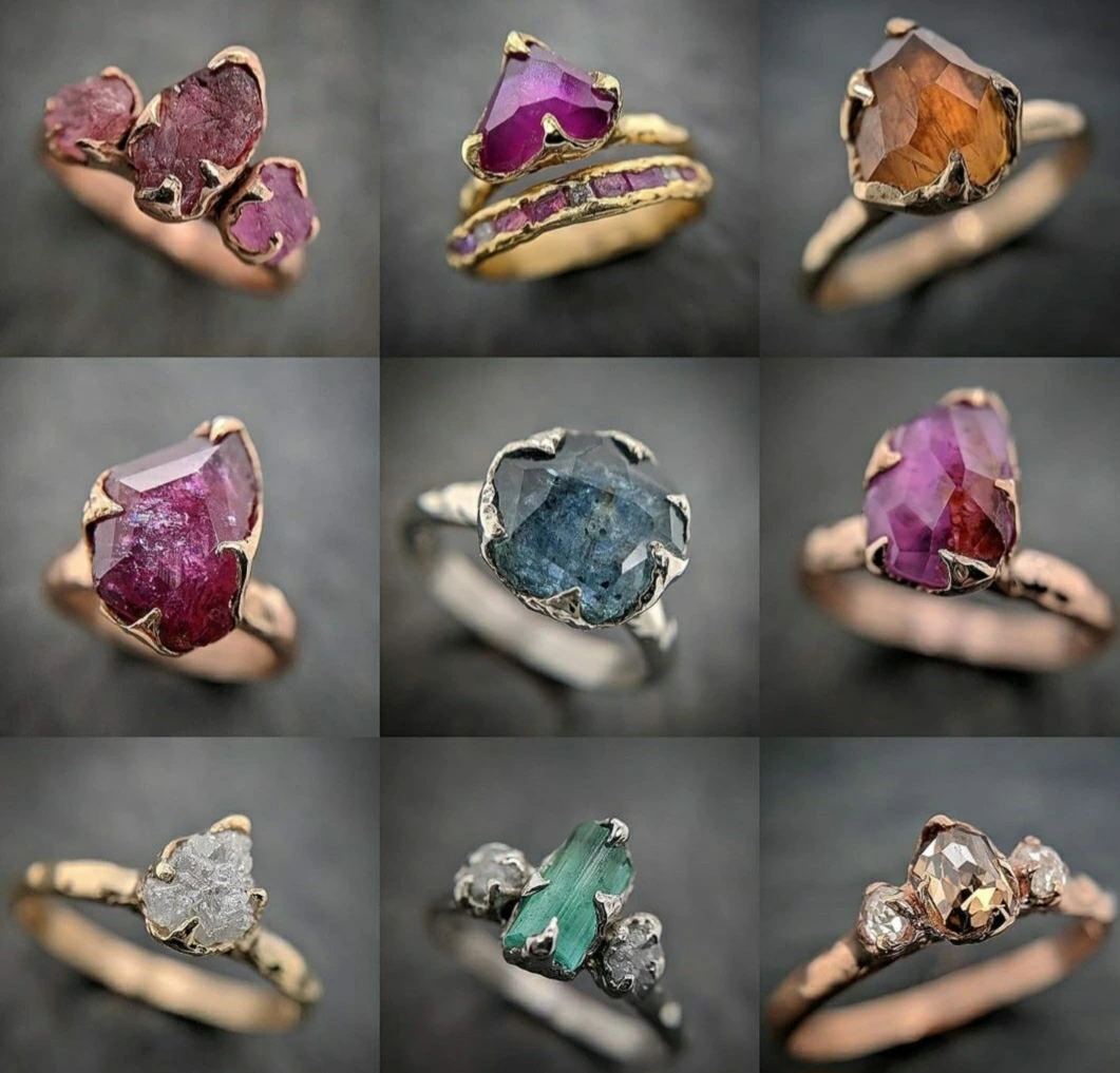 붉은빛 레드의 원석은 정열의 붉은 원석 천연 루비이다 원석의 형태와 빛을 보면 알 수 있듯이 러프 <거친>하고, 빛을 발산하지만 1% 부족한 듯 강렬한 빛의 보석처럼 쨍하지가 않다. 블루 빛나는 보석도 블루 사파이어이다. 역시 찬란하고 vivid <강렬한, 선명한>하지가 않다 은은하고 영롱하며 오묘하고, 심오하다. 심오한 빛을 머금고 있다. 하단에 그레이 회색빛이 감도는 보석도 러프 다이아몬드이다. 가운데에는 에메랄드 빛이 신비로움을 더하고 있다. 좌우에 한 개씩 박혀있는 러프 다이아몬드 와도 잘 어울리는 세팅을 하였다. 마지막 하단에 보이는 무색 영롱한 다이아몬드도 러프하면서 매력적인 빛을 뿜어내고 있다. 원석의 형태를 그대로 반지에 상단좌측 3개의 원석루비는 자연의 형태 그대로의 모습을 보이고 있다. 쨍하고 빛나는 화려한 보석 그 뒤에 2등으로 감추어진 그 보석 안에 1등 사람 1등 보석의 삶의 이야기가 있다. 그리고,더 가치있는 2등,3등의 순수한 보석들....순수한 사람들의 진한보석과, 삶의 이야기는 더 아름답다. 지구의 보석은 광활한 우주처럼 끝나지 않을 신비로운 보석들로 가득하다. 세계에 여인들은 보석이 궁금하여 줄을 서있다. 나의 보석 나의 원석은 무엇일까? 유색보석은 어떻게 하면 내손에 나의 삶에 나를 더 빛나게 할까?, 지금 우리가 살아가는 모습 역시 1% 부족하지만... 보석처럼 삶을 역동적으로 살고 있지 않을까? 러프한 다이아몬드, 러프한 유색보석에 매료되는 그 숫자가 점점 더 많아지는 이유는 무엇일까? 1% 부족한 매력 때문은 아닐까? 값이 저렴한 이유도 한몫하는지?.... 보석 칼럼니스트 박성진 작가... <문학바탕 월간지>