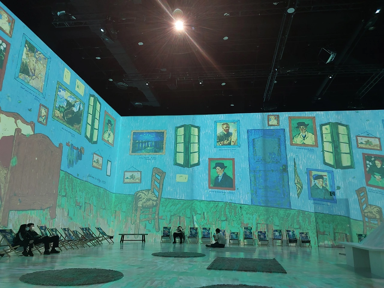 고흐의 방이 보이고, 창살로 박힌 창틀도 보인다. 아픔 많은 자화상이 지금도 보인다. 고흐의 눈빛 속에 우리는 무엇을 볼 수 있을까? 고갱이 떠나간 쓸쓸한 고갱이 없는 부재의 상실감 외로운 고흐 의자가 벽에 외롭게 붙어있다. 관객석을 위한 빈 의자들 지금이라도 내 옆에 고흐가 앉아있다면 하고 싶은 말이 있다. 너무 일찍 떠난 친구여! 나는 그대처럼 37세에 몾떠났으니 친구가 못한 꿈을 나에게 이어주시오라고.... <고흐가 별을 좋아하듯 별과, 달의 그림을 그리는 박성진 시인 >