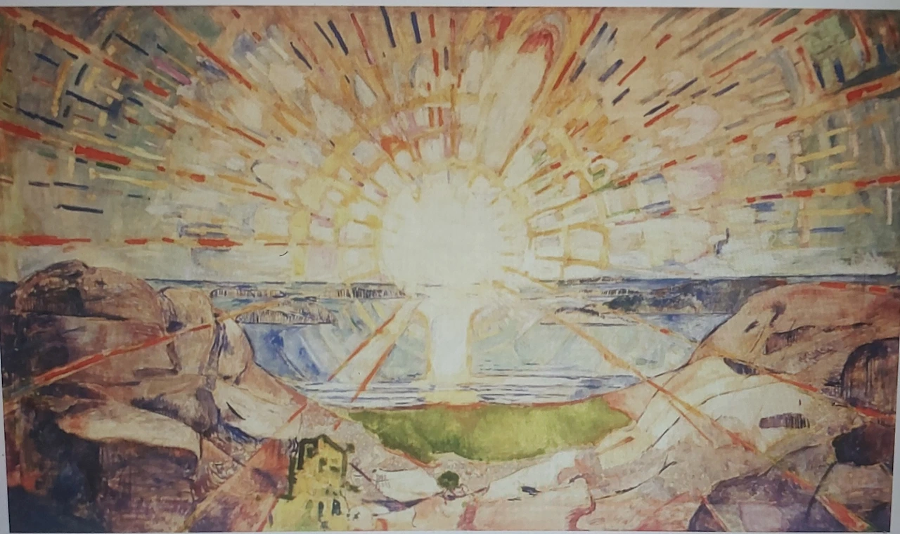 동시대의 빈센트 반 고흐가 있지만 공포스러운 삶을 역동적으로 초월하여 지배당하지 않은 화가 뭉크는 정신병원에 치료받은 뒤 48세에 그린 그림