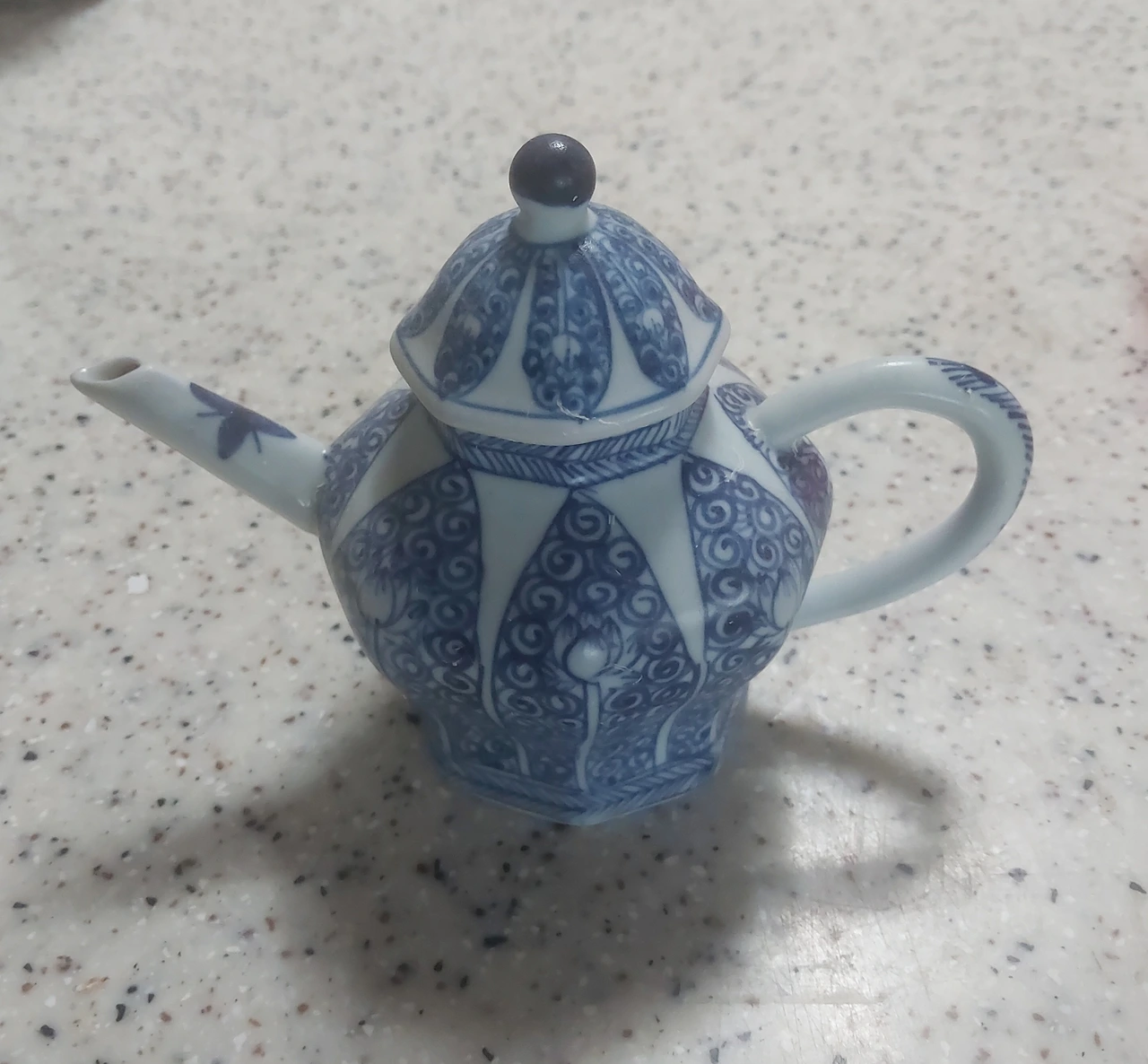 아담한 주전자 형태의 도자기는 혀