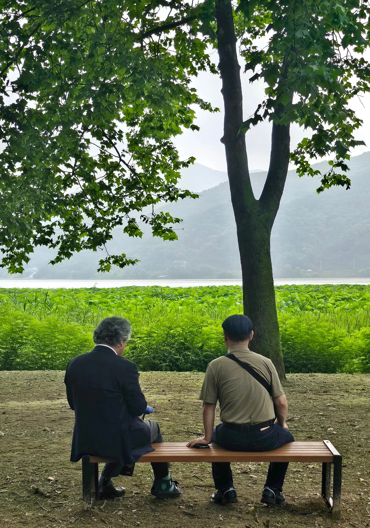 잠시 후 떠나게 될 세 사람 사이에서 또르르 톡 또르르 톡톡! 거리는 연꽃들... 이슬방울 떨어지는 소리가 또 봐요 말하듯 나에게 마법을 걸어버린 비어있는 벤치와 연꽃들의 싱그러운 노래여!