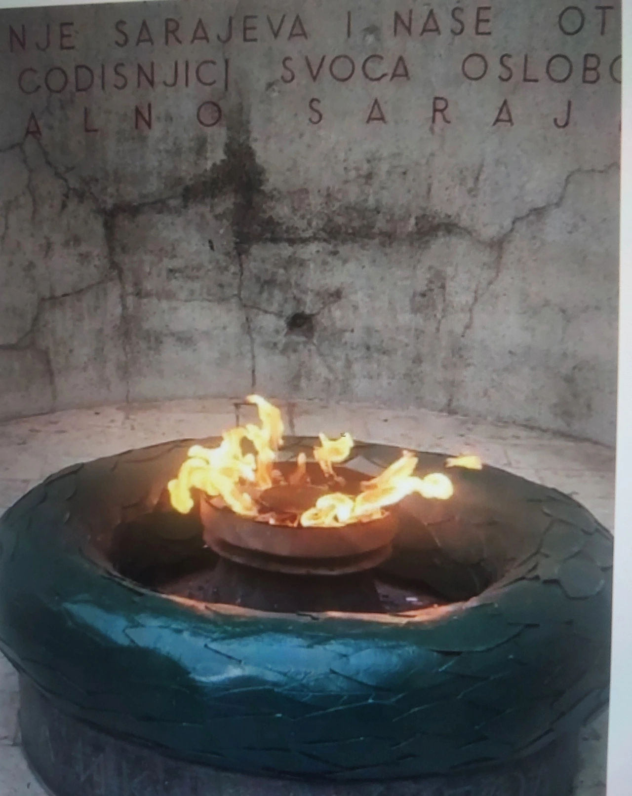 사라예보의 내전 정치가 갈라놓은 탄환의 흔적이 벽마다 박혀있다. 장미꽃들은 죽어서도 꽃이 시들 수 없는 이곳은 사라예보의 훨훨 타오르는 총성 없는 전쟁터