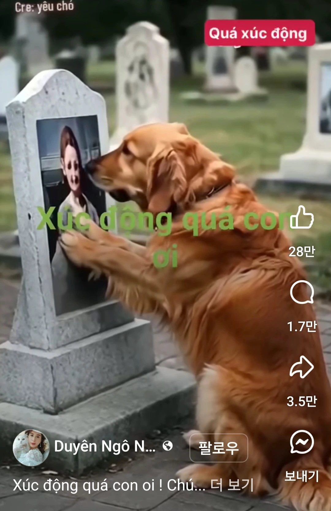 <묘비의 주인 앞 반려견의