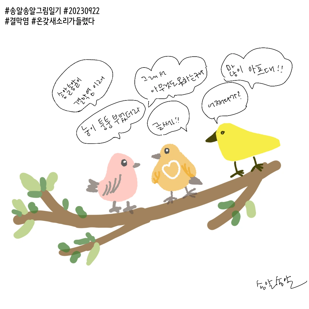 그렇게 며칠을 앓고 일어났다. 이제 책도 읽고 TV도 보고 일기도 쓴다. 그때 들었던 새소리를 기억하며 이름을 알아보고 싶은데 쉽지 않다. 아직 귀가 밝아지려면 멀었다. 그래도 ’왝‘이 왜가리 소리가 아니라 오리 소리라는 것은 확실히 알았다. 우리 집 앞을 흐르는 개천에 오리가 놀러 왔었나 보다.
