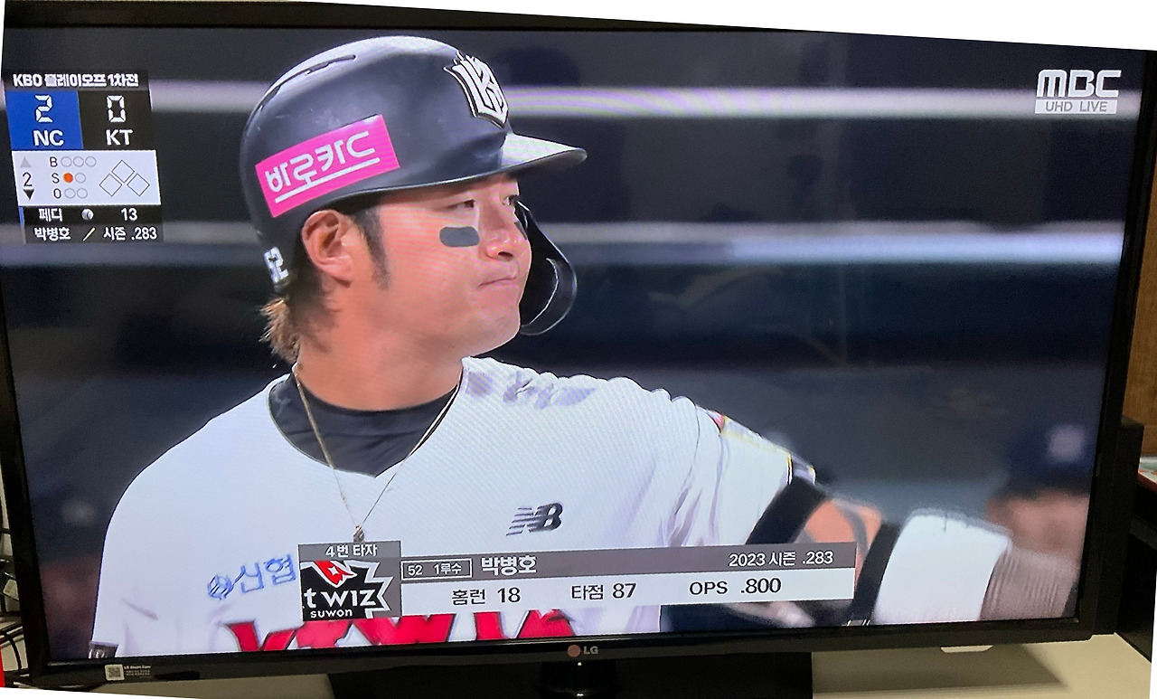 아주 오랜만에 야구를 본다. 시작하자마자 NC다이노스가 점수를 냈다.