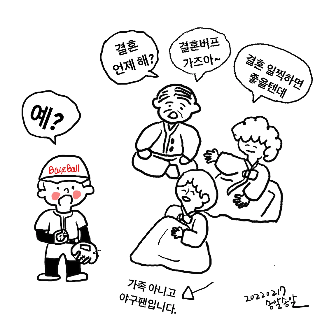 가장이 되면 야구를 더 잘할 것 같다며 결혼하기를 바란다. 가장의 무게감은 모른 척하는 이 오지랖은 어떡하나.