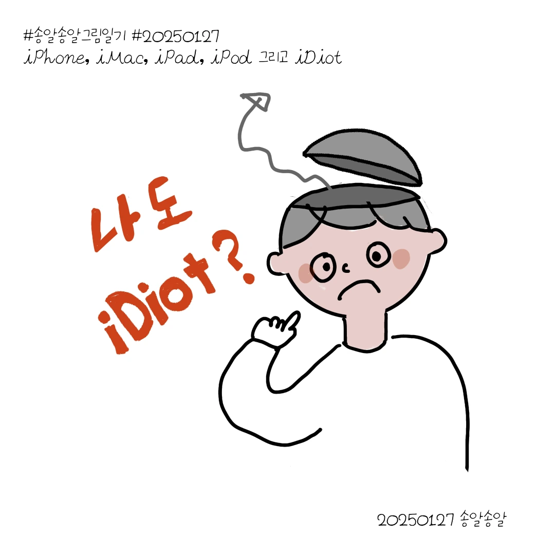 그림에 책상 앞 의자에 앉아 손목에 iWatch를 차고 히죽거리며 iPhone 화면을 보고 있는 사람이 있다. 그의 책상에는 iMac, iPad, iPod이 있다. 작업하고 글 쓰고 그림 그리고 검색하고 영상 보고 음악 듣고- 일상에서 뗄 수 없는 기기들이다. iPod을 요즘도 쓰는 사람이 있나? 없을 것 같은데 아닌가? 우리 집 iPod은 서랍 안에서 주무시고 있다. 쿨쿨쿨. 잠든 지 오래되어 깨워도 깨어날 것 같지 않을 것 같다. 이 모습이 왜 바보 그림이냐고? 히죽히죽 웃고 있는 이 사람 아래에 ‘iDiot’라는 이름표가 붙여있다. 디지털 바보 혹은 디지털 치매라는 의미이다. 푸하하 하하하. 반박을 못하겠다. 길 찾기, 전화번호 기억, 간단한 계산, 복사하기와 붙이기 등등 예전에는 내 기억과 능력으로 했던 일을 이제는 핸드폰과 컴퓨터에 의존한다. 편리하고 나보다 훨씬 잘한다. 바보를 뜻하는 영어 단어가 알파벳 I로 시작하는 것은 우연의 일치치고는 참 의미심장하다.