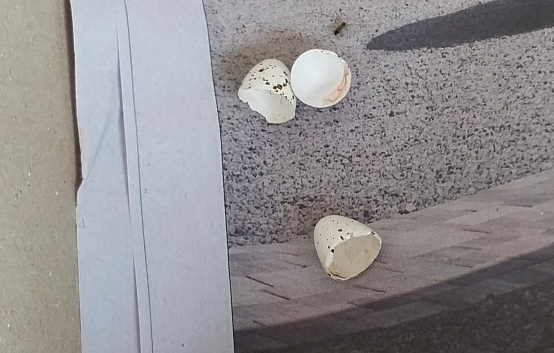 제비들이 입주하고 일주일쯤 지났으려나, 제비들의 정화조에 깔아 둔 신문지를 갈려고 보니 깨진 알껍질이 있다. 메추리알 같은 껍질이 무려 3개나. 이것은 바로바로, 새끼들이 알에서 깨어났다는 의미다. 새끼가 알을 깨고 나오면 어미 제비는 알껍질을 집밖으로 던진다고 한다. 신기해서 알 껍질을 요리조리 살펴보았다. 껍질이 3개니까 3마리인가? 아니면 2개당 1마리로 계산하면 최소 2마리인가? 제비는 알에서 깨어나자마자 눈을 뜨나? 언제쯤 날 수 있으려나? 궁금하다.