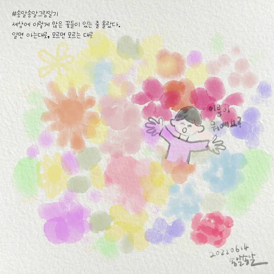 나는 나와 끝내 절교해야 하는 건가. 좋아하면서 이름을 모르는 게 말이 되는가. 김춘수 시인도 이름을 불러주어 그제야 꽃이 되었다고 했다. 이름을 모르면 꽃을 좋아하고 칭송하면 안 되는 건가 , 괜히 뻗대고 싶다. 이름을 꼭 알아야 되나? 꽃의 아름다움을 알고 즐기고 감사하면 되잖아. 그렇지만 꽃의 이름을 알고 싶다. 다정하게 불러보고 싶다. 마음이 오락가락한다.