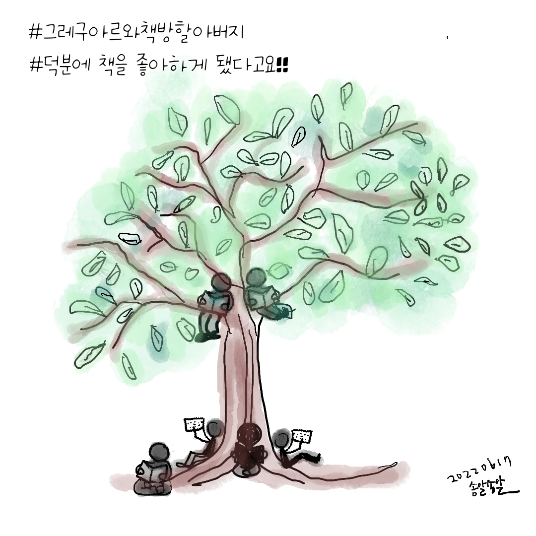 피키에 할아버지의 따뜻한 마음 덕분에 미래가 막막했던 그레구아르는 인생을 더 이상 겁내지 않게 된다. 그레구아르는 쑥쑥 자라서 아름드리나무가 될 테다. 그레구아르는 할아버지 덕분에 책과 친해지고 , 책을 좋아하게 되었고. 책을 읽게 됐다고 말한다. 내 책 읽어주기도 그런 역할을 했더라면 좋았을 텐데… “덕분에 책을 읽게 됐다고요!”라는 말을 들으면 얼마나 뿌듯할까? 기분이 참 좋겠지.