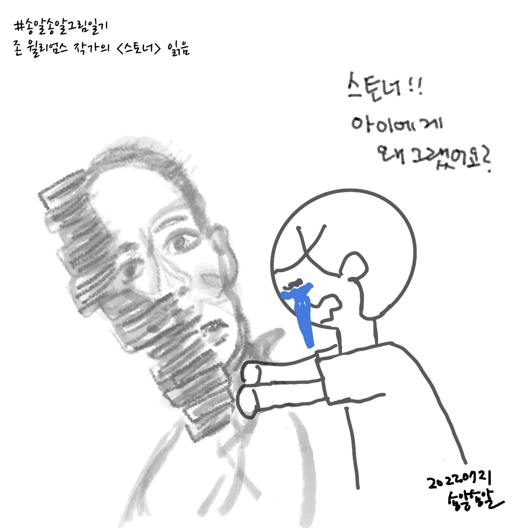 스토너에게 삶의 의미는 ‘학문’이다. 영문학을 공부하고 가르치는 것을 좋아한다. 힘들고 성과가 미미해도 좌절하지 않고 최선을 다한다. 부인과 사이가 좋지 않지만 스토너의 성정으로 보아 불륜을 절대 하지 않을 것 같았다. 그런 스토너가 캐서린과 사랑에 빠진다. 애틋하고 아름답지만 불륜이다. 영문학이라는 공감대가 없었다면 이 사랑도 없었을 것이다. 스토너는 자신이 사랑하는 영문학이 있어 평생을 버티고 견뎌낼 수 있었나. 아무리 그래도 딸아이를 위해서는 좀 더 애써야 했다. 아내와 부딪치기 싫어 딸을 방치한 것 아닌가. 아이를 지켜보고 견디기만 해서는 안되었다. 극성을 부렸어야 했다는 의미가 아니다. 책장을 덮을 때쯤 스토너의 삶이 감동으로 다가오지만 그의 딸을 생각하면 슬프고 속상하고 안타깝다. 스토너, 아이에게 왜 그랬어요?