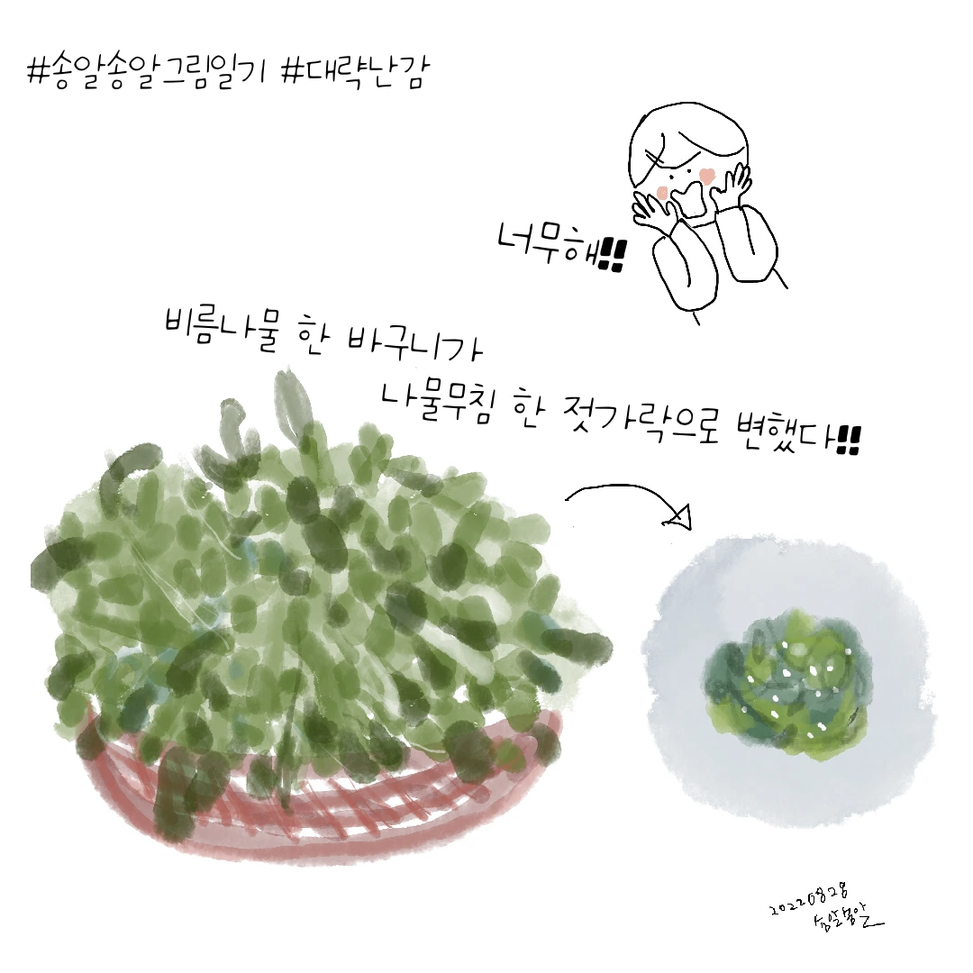 원래 나물이란 것이 다듬고 데치고 무치고 나면 부피가 확 줄어드는 것이 당연하지만 말이다.