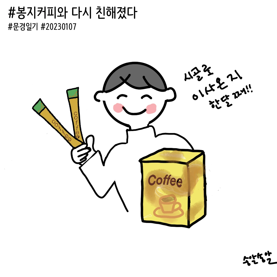 나도 한때 중독인가 싶을 정도로 봉지커피를 좋아했던 적이 있었다. 회사에 출근하자마자 가방을 책상 위에 던지듯이 올려 두고 컴퓨터 전원을 켜고 한 잔 마시는 커피는 얼마나 다정했던가. 오늘도 일 잘해보자고 다짐하는 나에게 보내는 응원의 맛이었다. 오후 3시와 4시 사이쯤 마시는 커피는 얼마나 달콤했던가. 없는 능력과 있는 성실을 다 짜내어 일하다 보면 몸이 아우성을 쳤다. ‘ 당과 카페인을 보충하라! 그렇게 하지 않으면 그나마 있는 능력이 바닥날 것이니 당장 커피를 마셔라.’ 직원 중 누군가 내려놓은 원두커피가 있어도 봉지커피에만 손이 갔다. 이렇게 홀린 듯이 꼬박꼬박 마시던 봉지커피가 휴일에는 전혀 생각나지 않았다. 신기하게도 말이다. 퇴사를 하고 내가 봉지커피를 조금씩 잊어갈 무렵 원두커피 바람이 불었다. 그렇게 봉지커피와 헤어졌다.