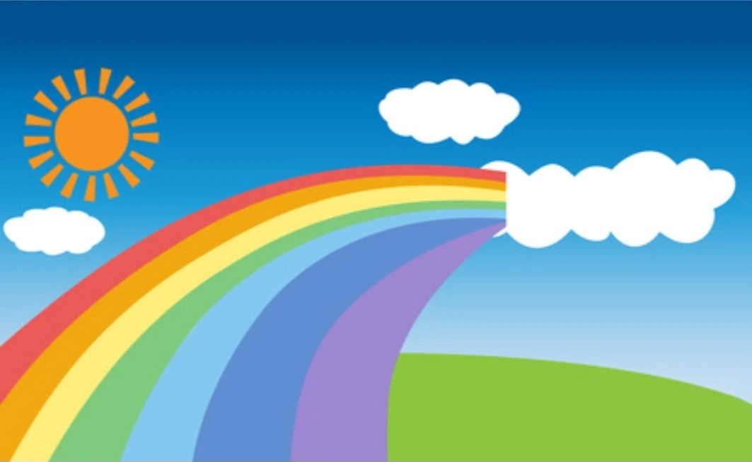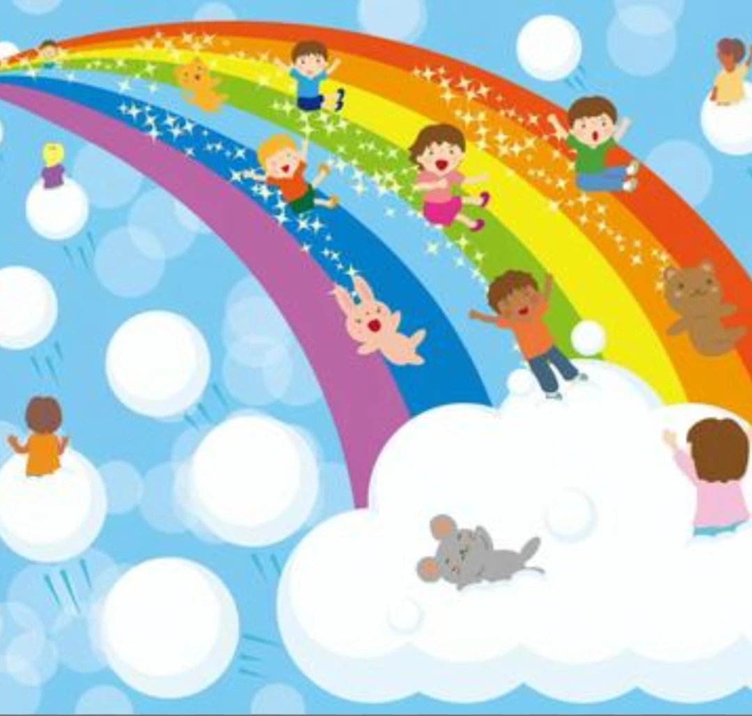 “엄마, 미끄럼 타고 싶어. 무지개 위에서!”