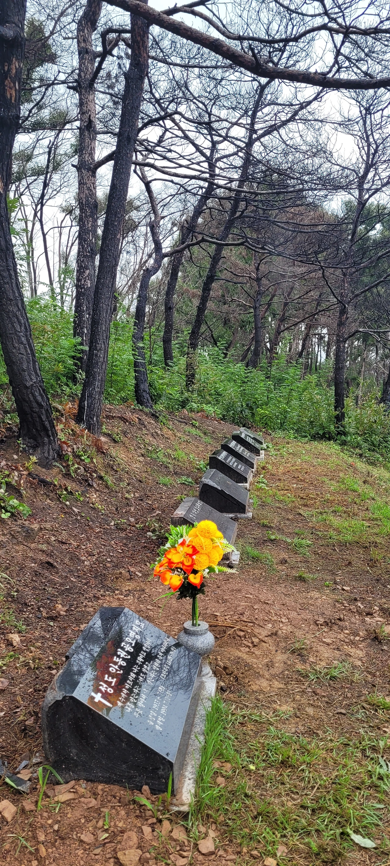 봄에 크게 났던 산불로 그을렸던 나무들도