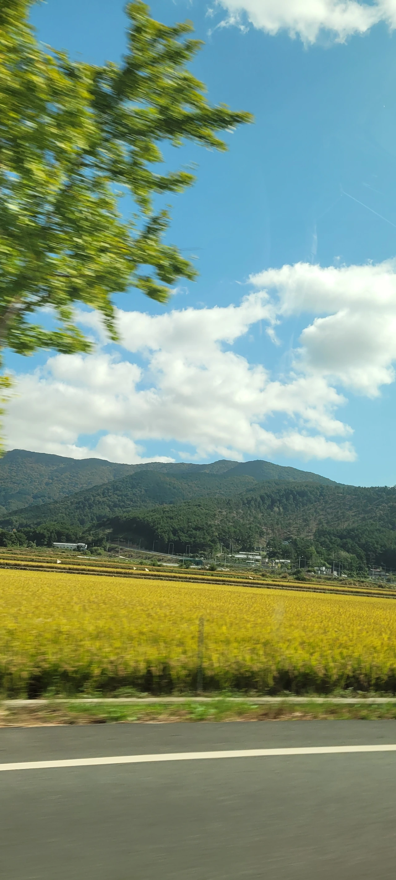 가을빛이 스민 들판과 바다의 경계가 참으로 평화롭다.